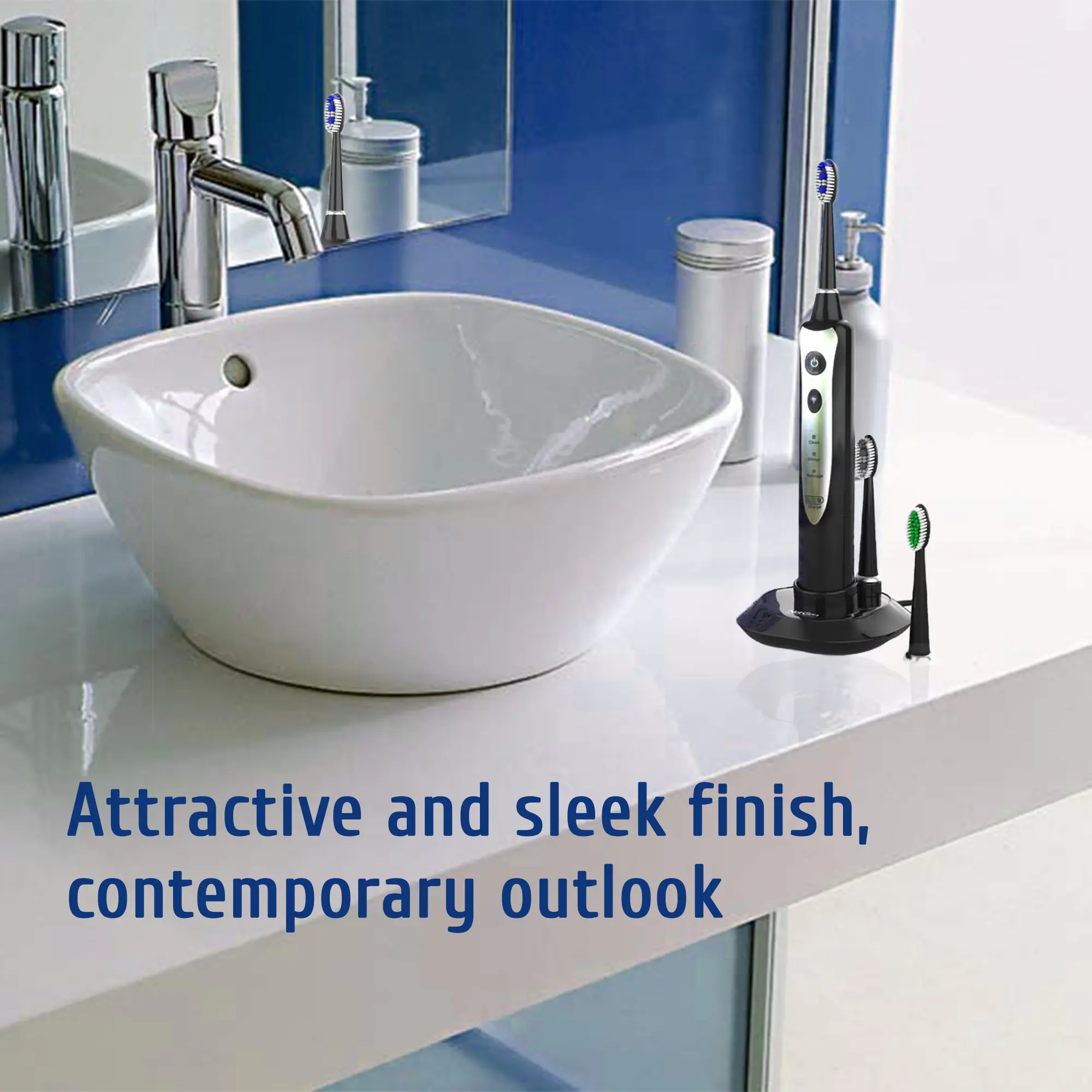 ·LONG BATTERY-LIFE, EXPEDIENT INDUCTIVE CHARGING: Get superb cleaning of your teeth and gums with a sonic toothbrush. Progressively improve your gum health with this long battery-life automatic toothbrush. Experience hassle-free charging comfort with the ingenious inductive charging technology that charges up your toothbrush without any wire. This battery operated toothbrush is more eco-friendly, saves electricity, and is worth your money. Longer than any other rechargeable travel toothbrush.