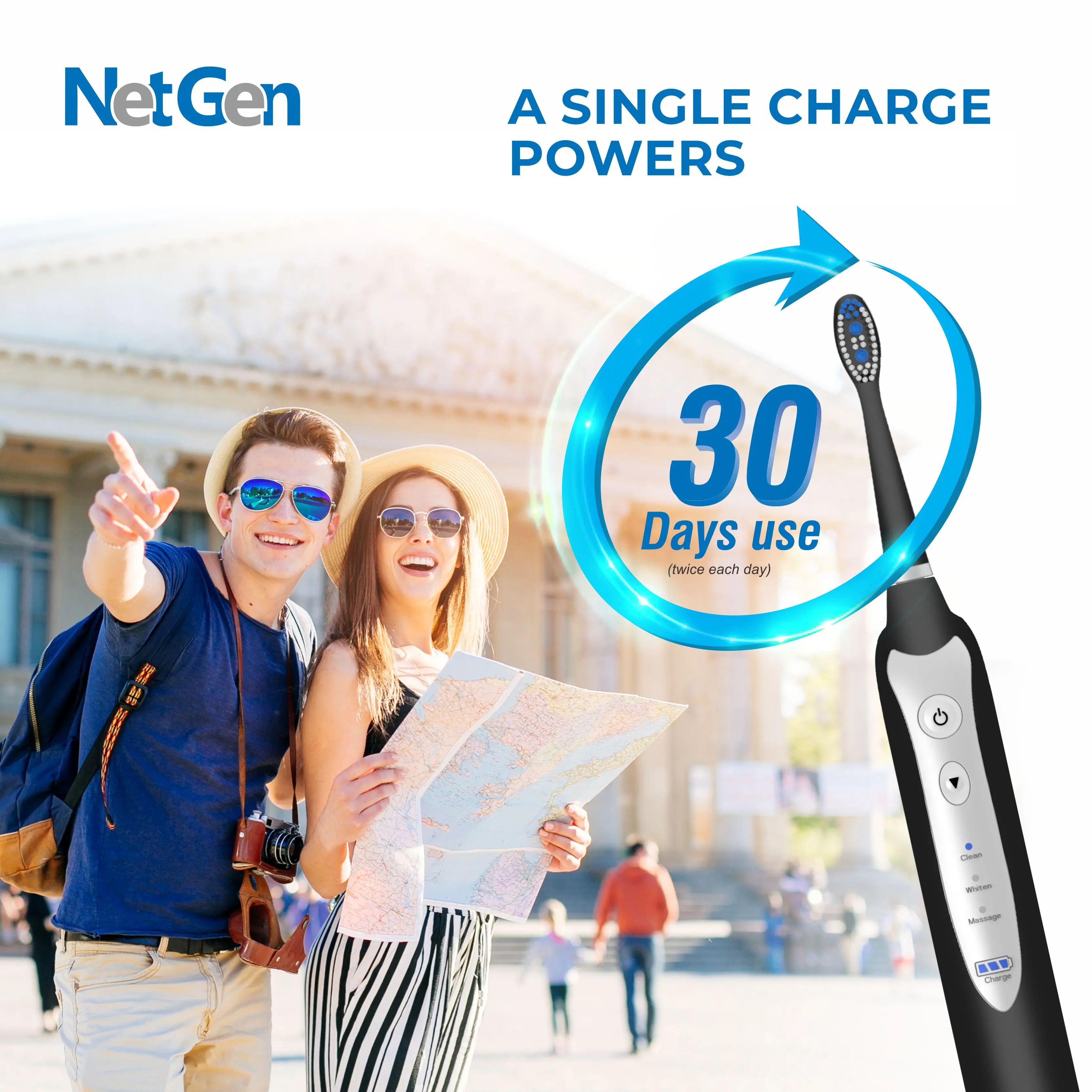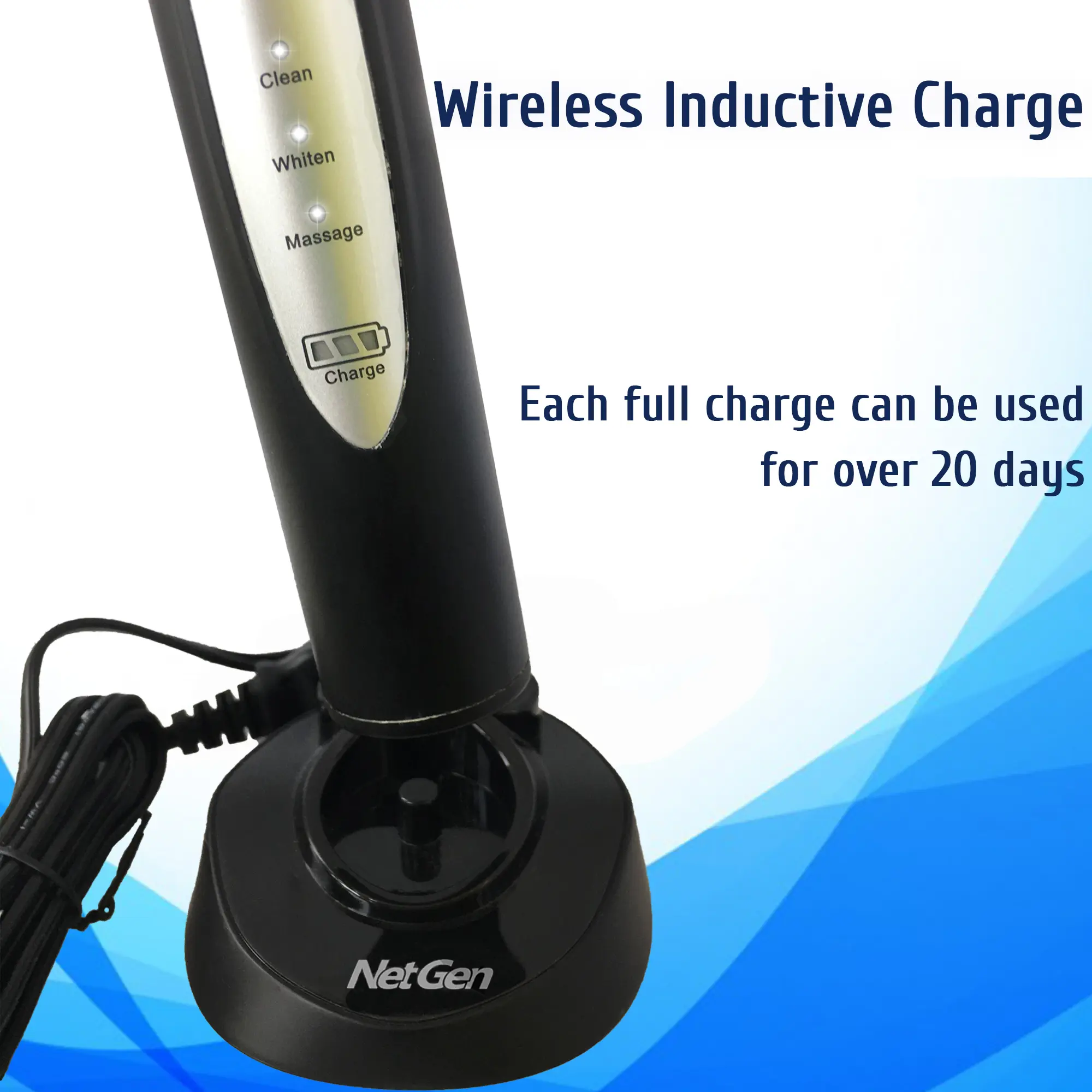 ·ADVANCED SONIC TECHNOLOGY, BEST PULSATING ACTION: Experience the power of real cleaning with a sonic toothbrush; featuring fast pulsating action of up to 40,000 vibrations per minute. This electronic toothbrush is far more effective than ordinary toothbrushes and provides excellent oral care with visible improvement within few weeks. Wireless Inductive Charging, once fully charged, the toothbrush electric can be used for over 20 days. NetGen toothbrush offers deeper reach and surface cleansing.