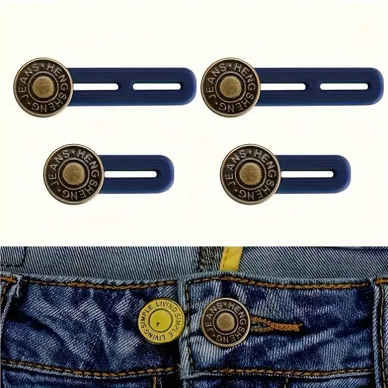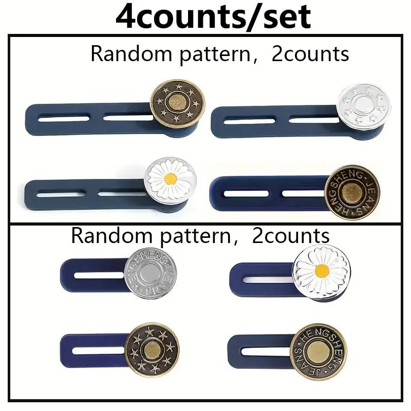 Random Style Button Extender for Pants, 4 Counts Adjustable Waist Button, Retractable Waistband Extender, No Sew Buttons, Easy To Use and No Tools Required, Sewing Accessories