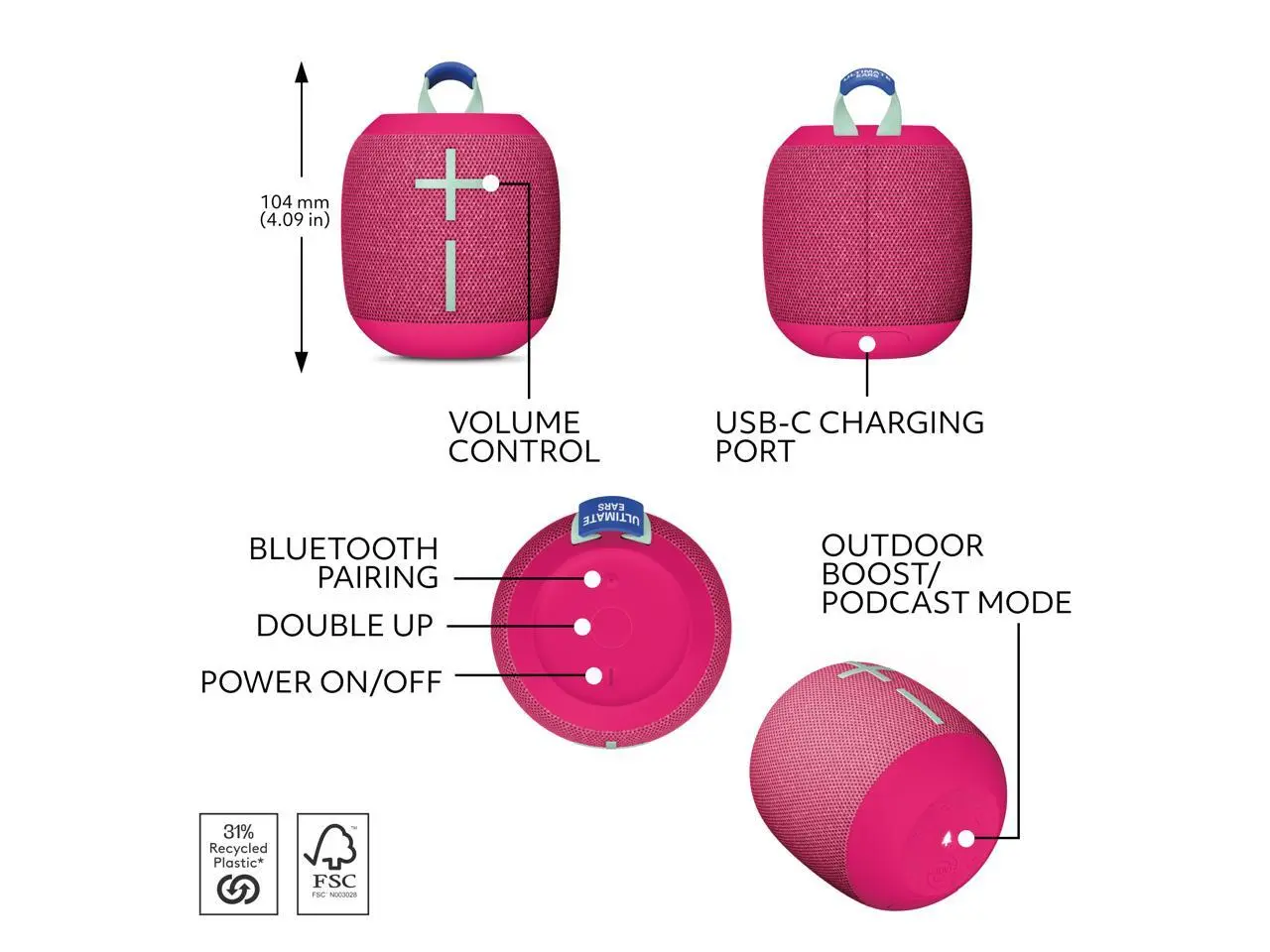 Ultimate Ears WONDERBOOM 4 Wireless Bluetooth Speaker - Pink