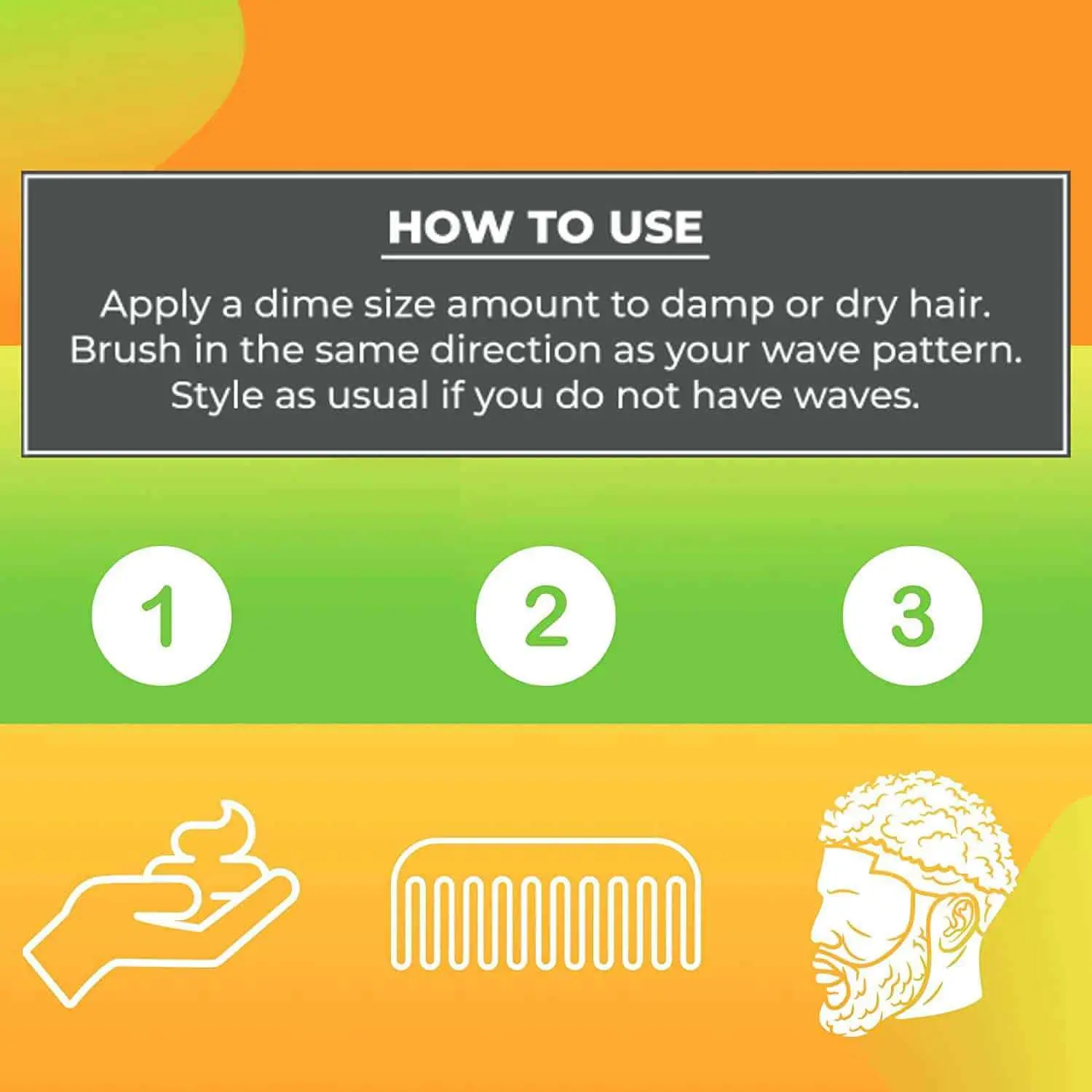 » Apply a dime size amount of hair butter to damp or dry hair and distribute it through in the same direction as your wave pattern. Brush and style as usual.