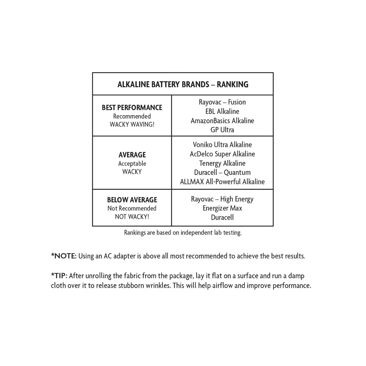 · If using an Alkaline battery, it must be NEW. Refer to product information sheet included in box for recommended brands.