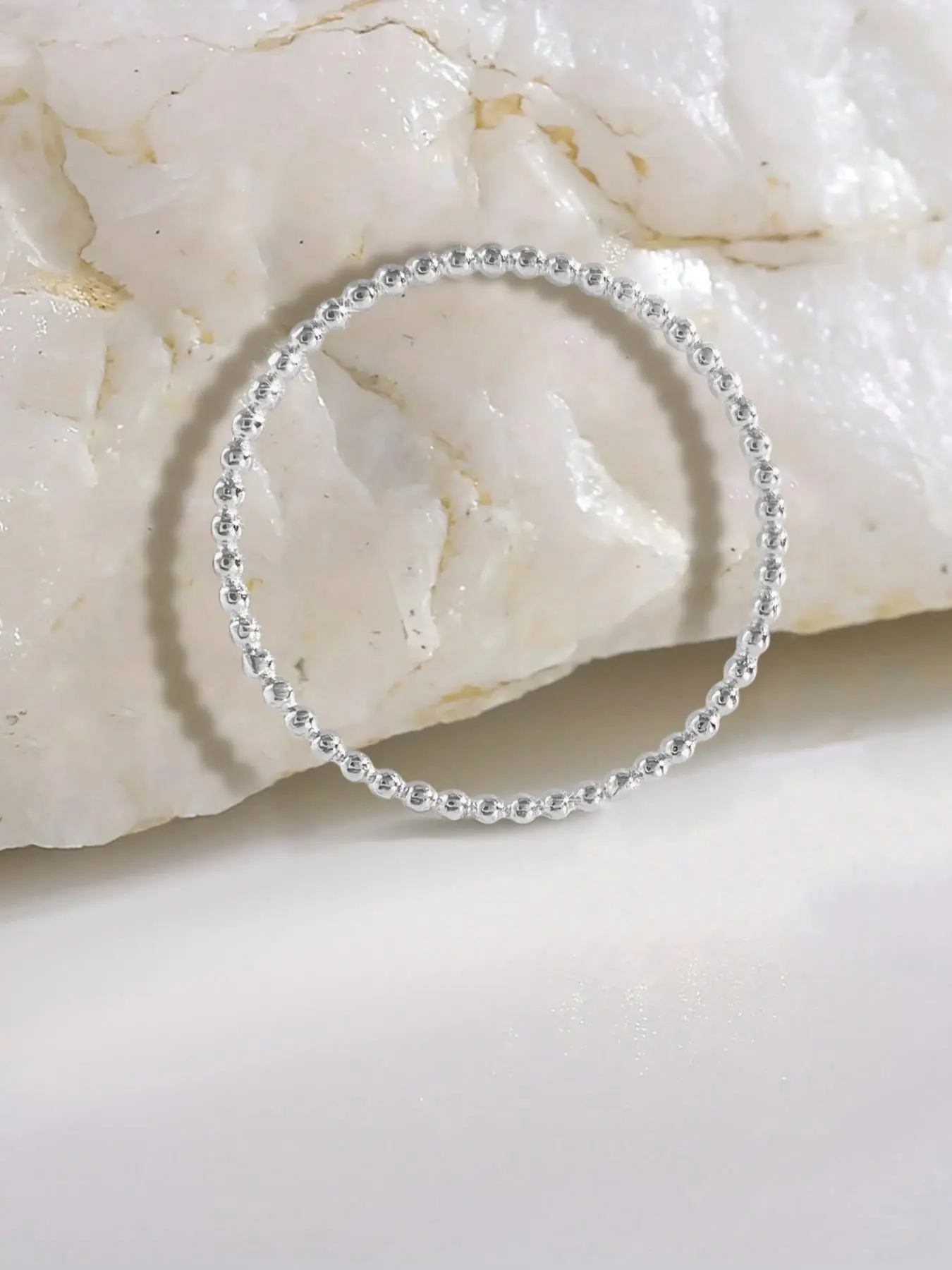 S925 Sterling Silver Simple Stackable Round Bead Ring, Fashion Accessories for Women & Girls, Trendy All-match & Exquisite Jewelry for Birthday Gift