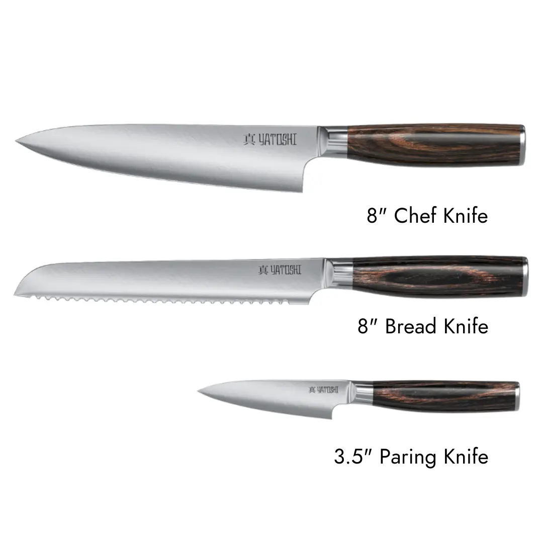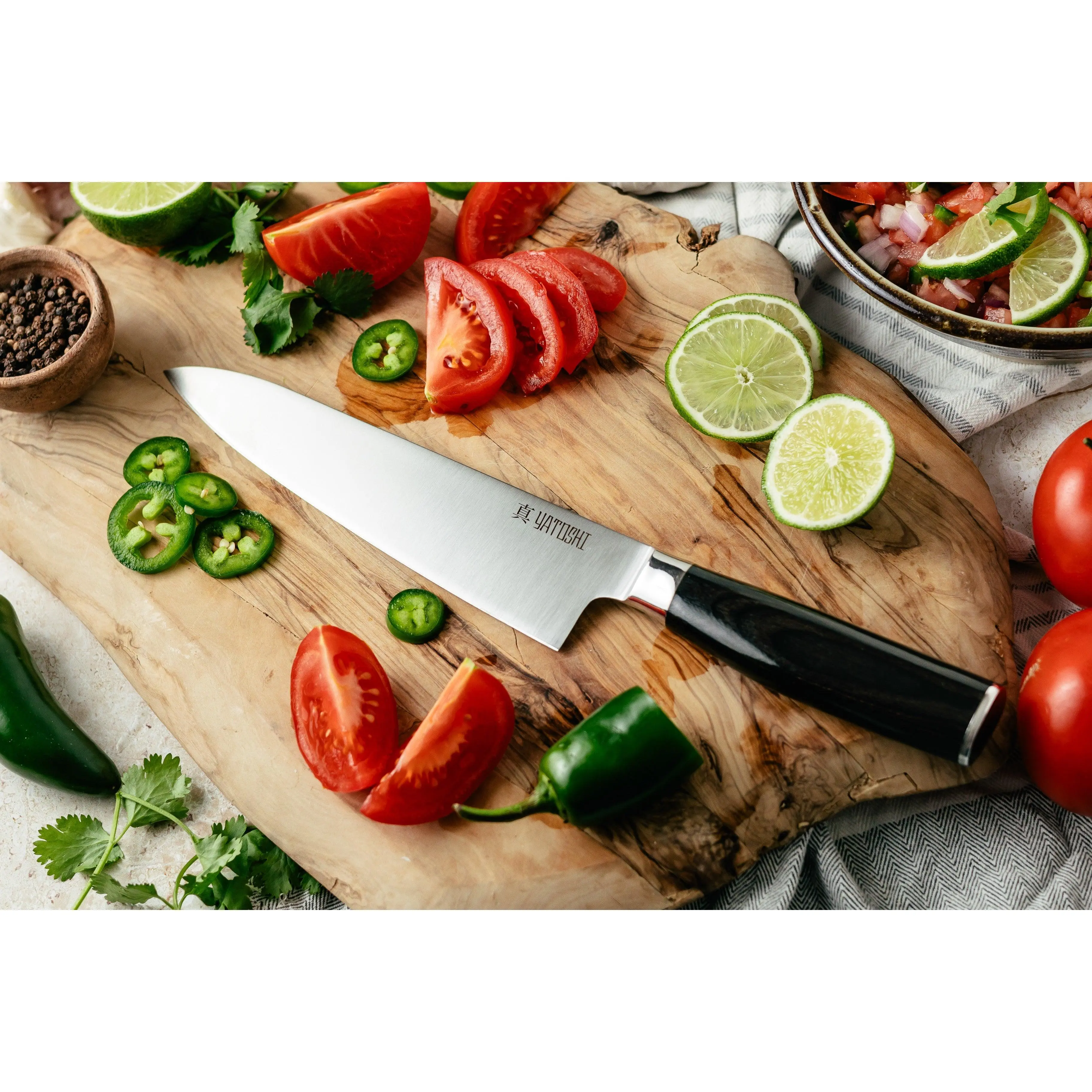 Each Japanese-inspired blade is precision-engineered for exceptional balance, a 15° cutting edge, and an impressive hardness of HRC58+, making every slice effortless and every cut a joy. Resistant to rust, corrosion, and stains, these knives stay as beautiful as they are sharp; meal after meal, year after year.