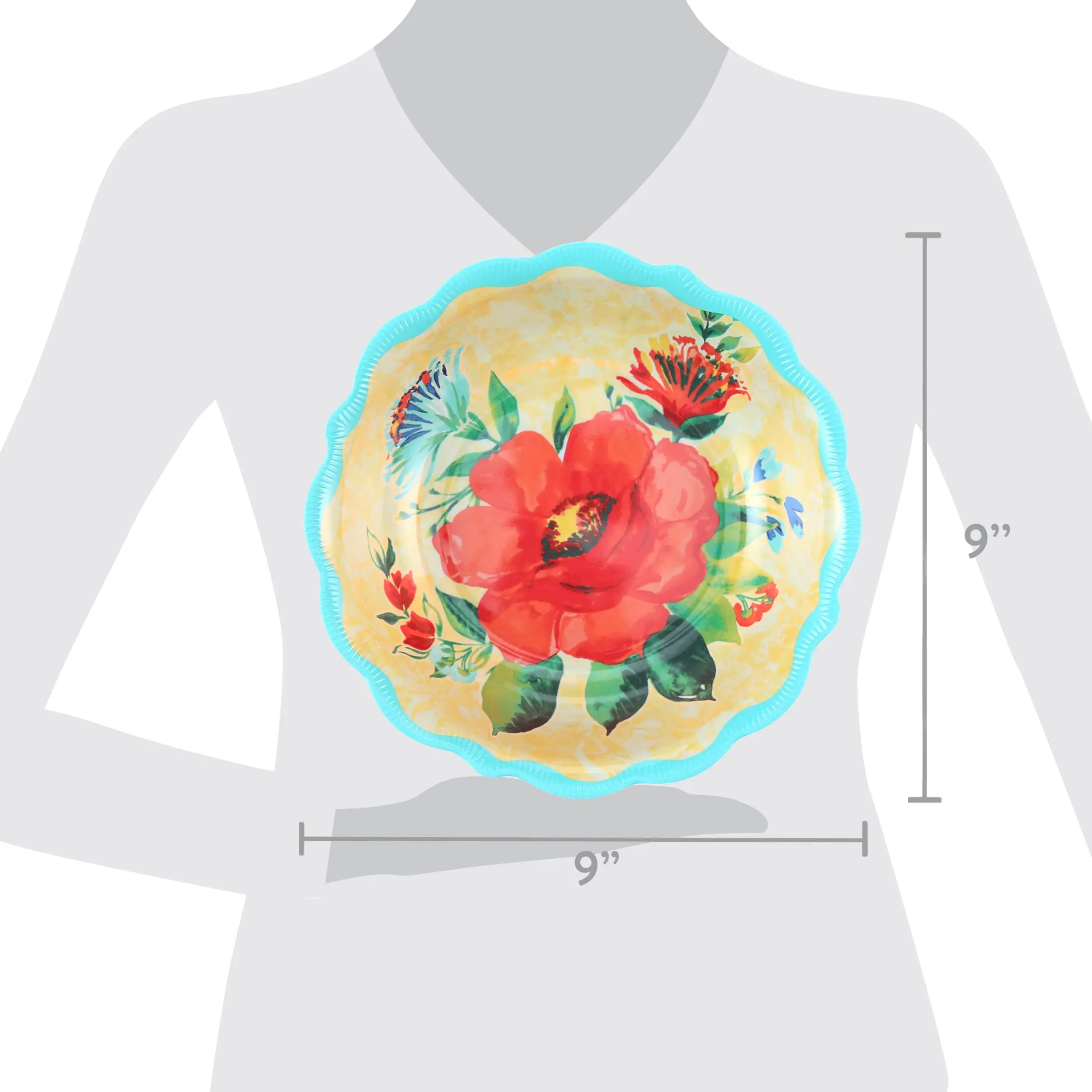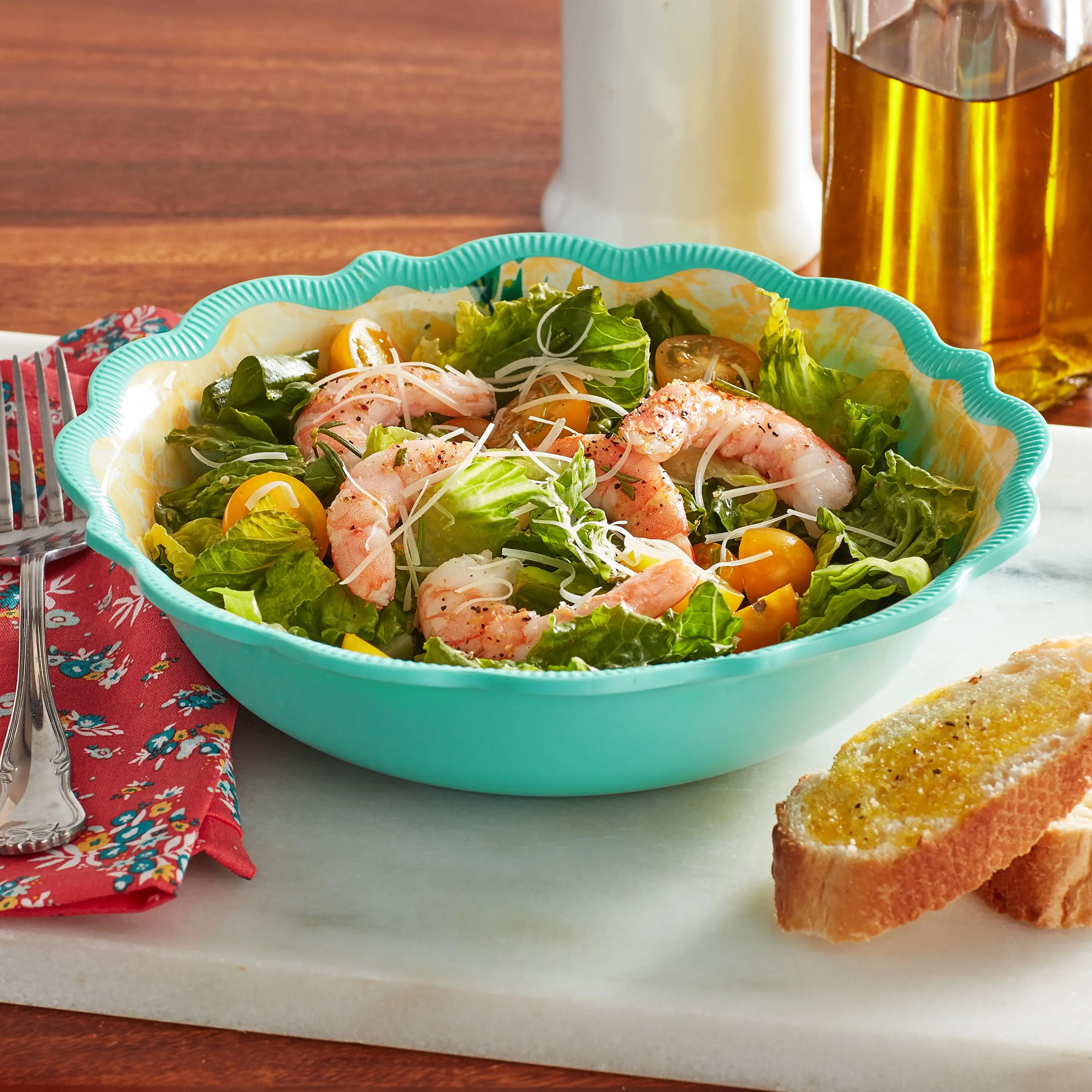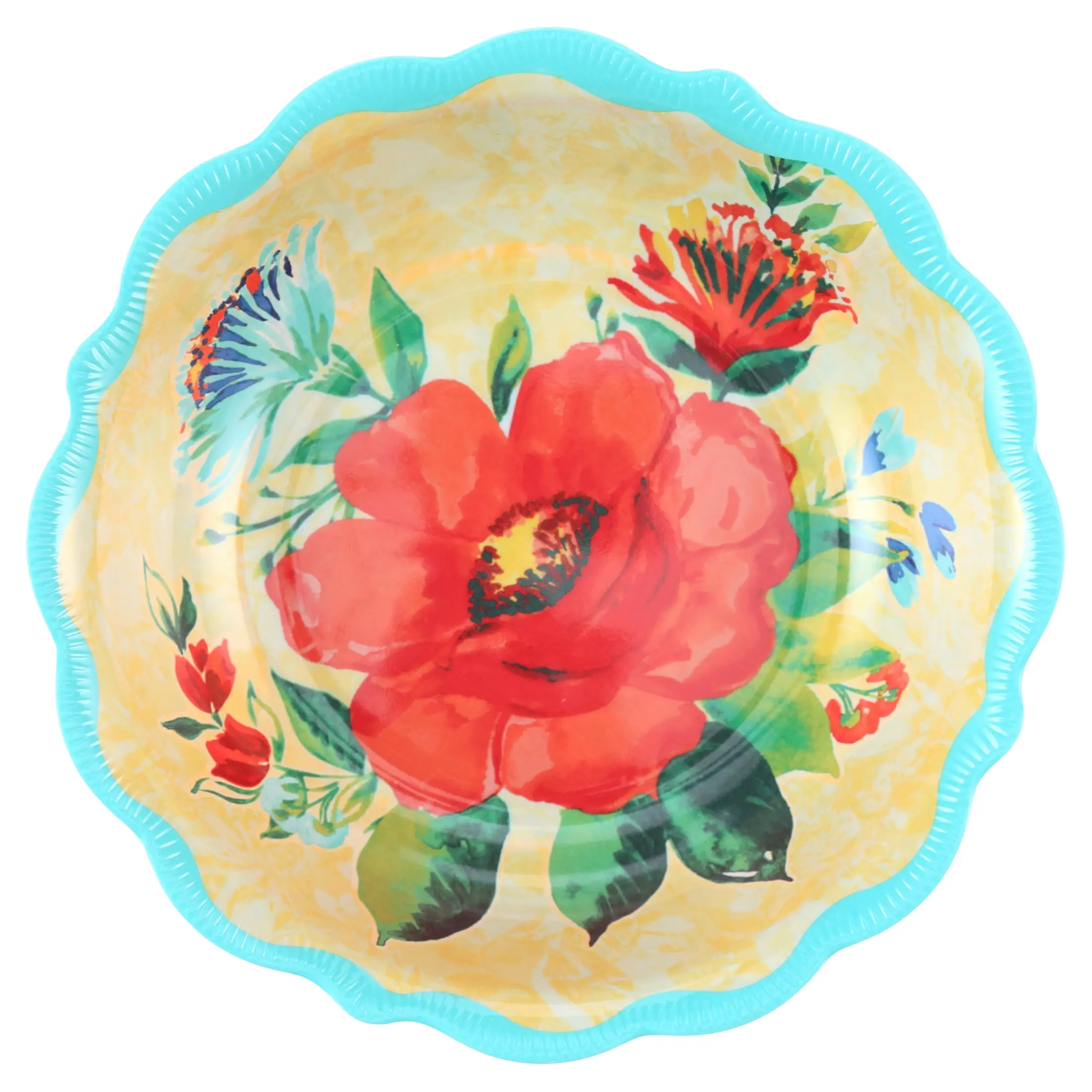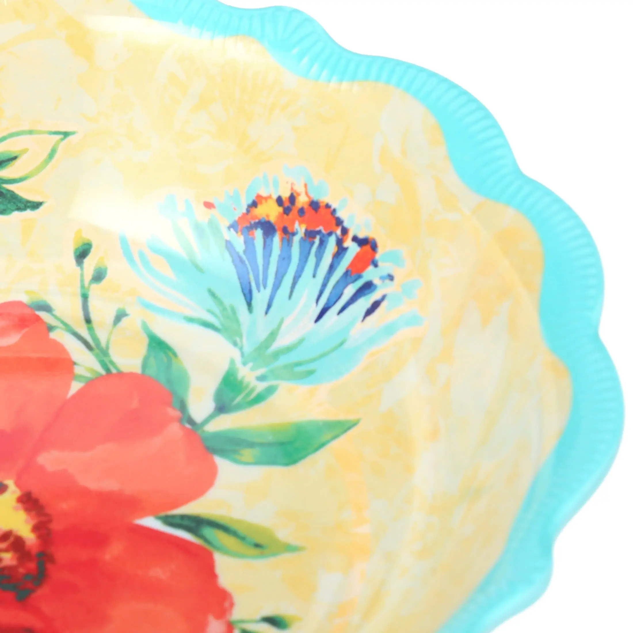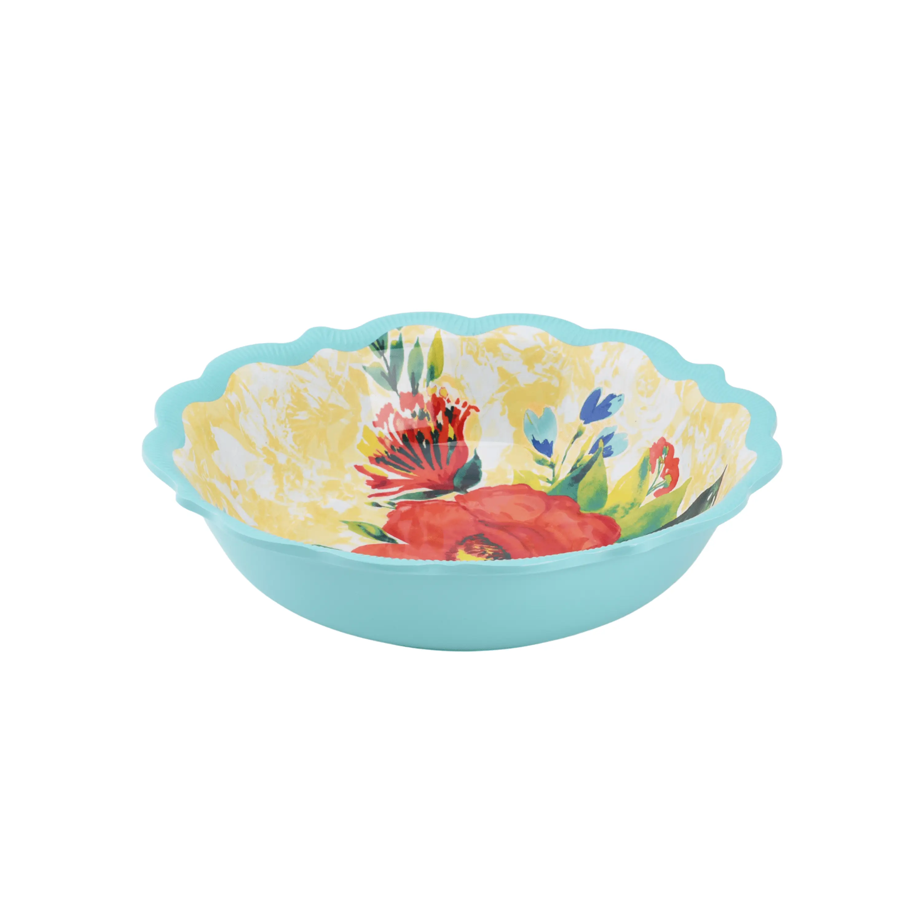 Bring the vibrance of The Pioneer Woman collection to your dinner table with The Pioneer Woman Delaney Melamine Dinner Bowl. Beautifully designed with pops of color and full floral blooms, these dinner bowls turn any dining experience into both a feast for the stomach and the eyes. Each dinner bowl is constructed from durable, dishwasher-safe melamine material that not only makes it easy to enjoy a meal wherever and whenever you want, but also makes your after-dinner cleanup sessions a breeze. Plus, their vintage-inspired scalloped edges make them an excellent piece to mix and match with other items in the Pioneer Woman collection and create a personalized look in your dining room. Make your meals stand out with The Pioneer Woman Delaney Melamine Dinner Bowl.