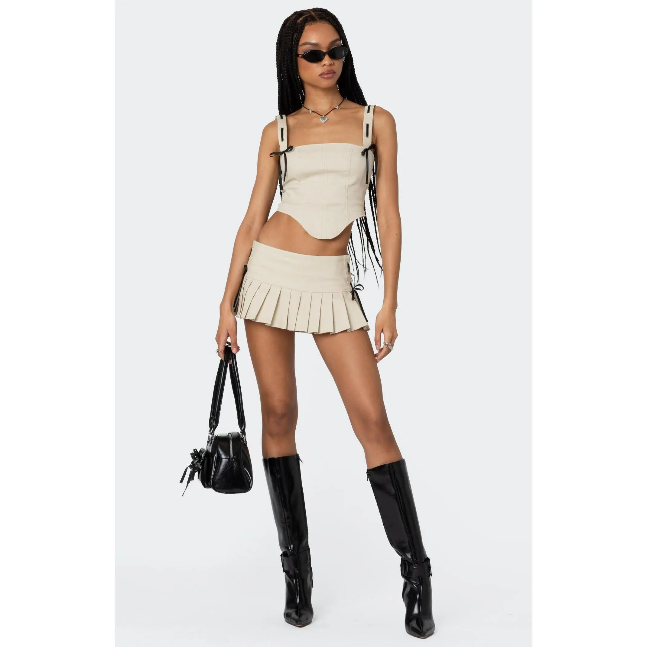 Online only! This skort from Edikted is about to become your next go-to. With its pleated design and chic ribbon detailing, you'll be reaching for this again and again. Pair with the matching corset to complete the look.