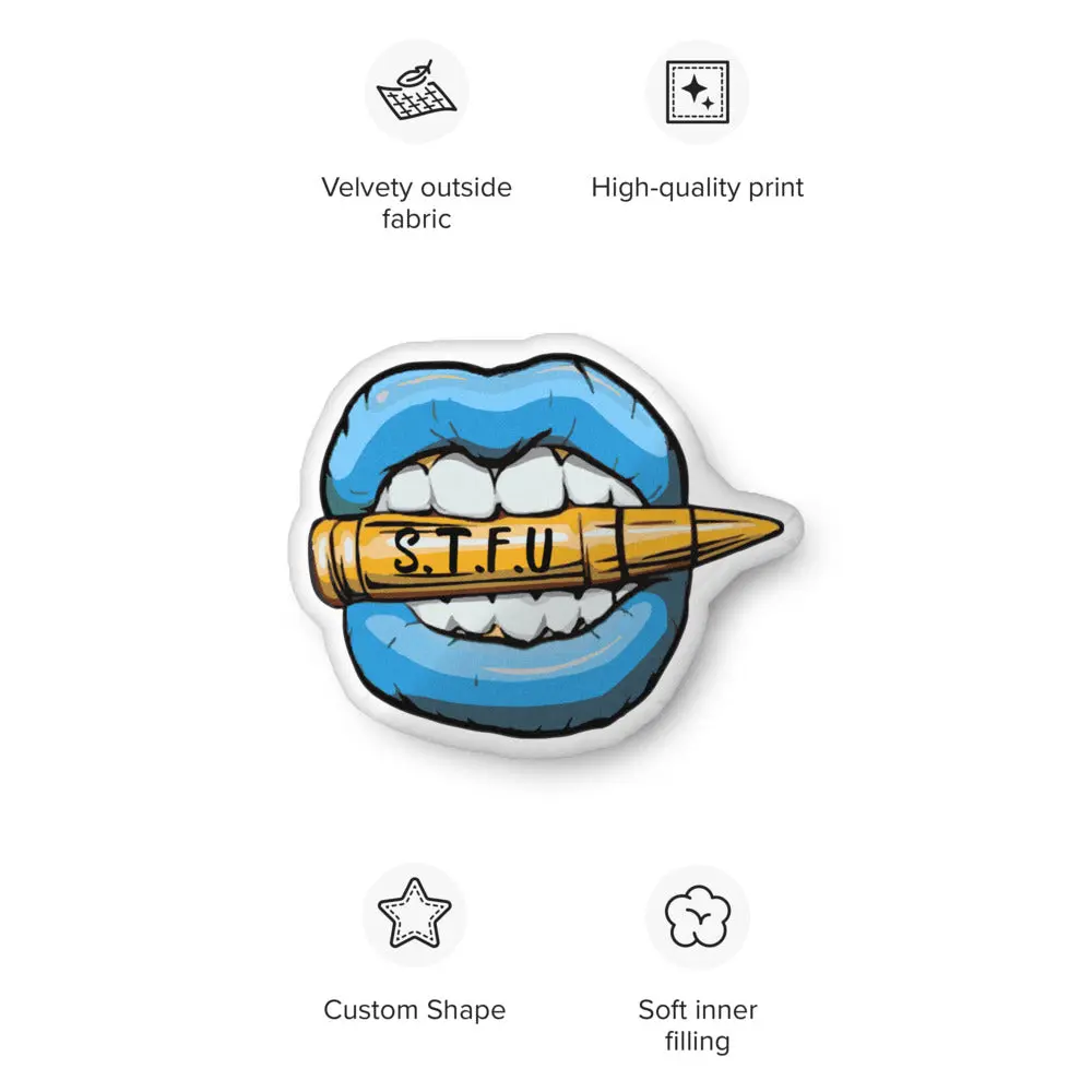 β¨ Elevate your comfort with the STFU Ice Blue Logo Shaped Pillow! This pillow is crafted from 100% soft polyester, ensuring a velvety soft feel. It'szipper-free, making it easy to spot wash with warm water. The vibrant print adds a touch of style, perfect for self-treatments or gifting.Β