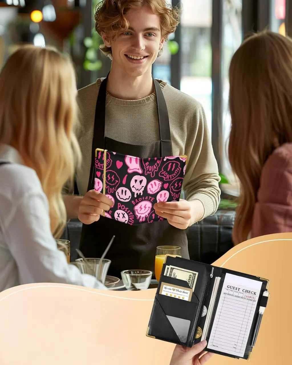 Server Book for Waitress with Zipper Pocket Accessories Leather Server Check Book
