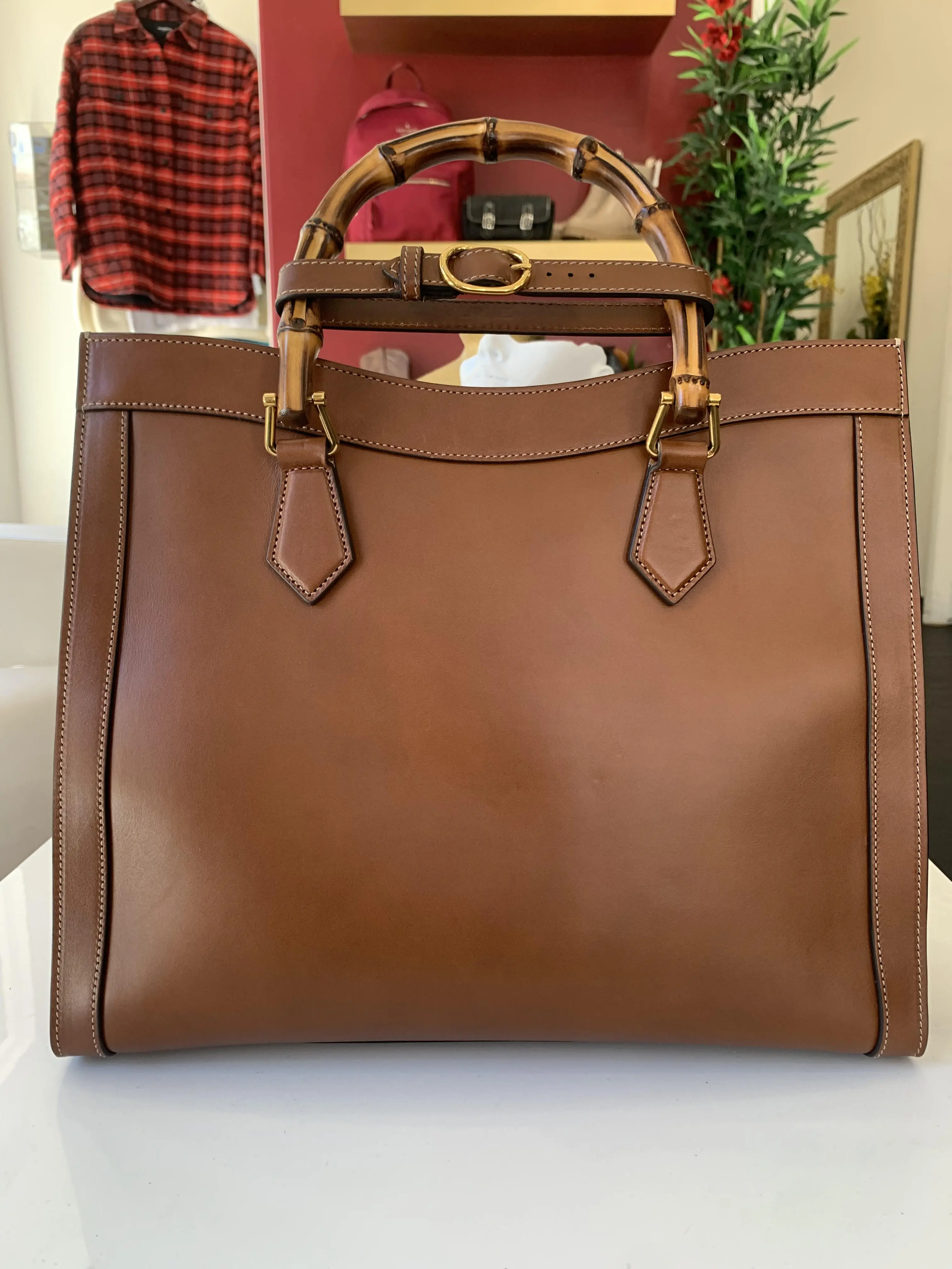 This pre-owned Gucci Diana Brown Leather Tote Bag is a classic and elegant piece in great condition.