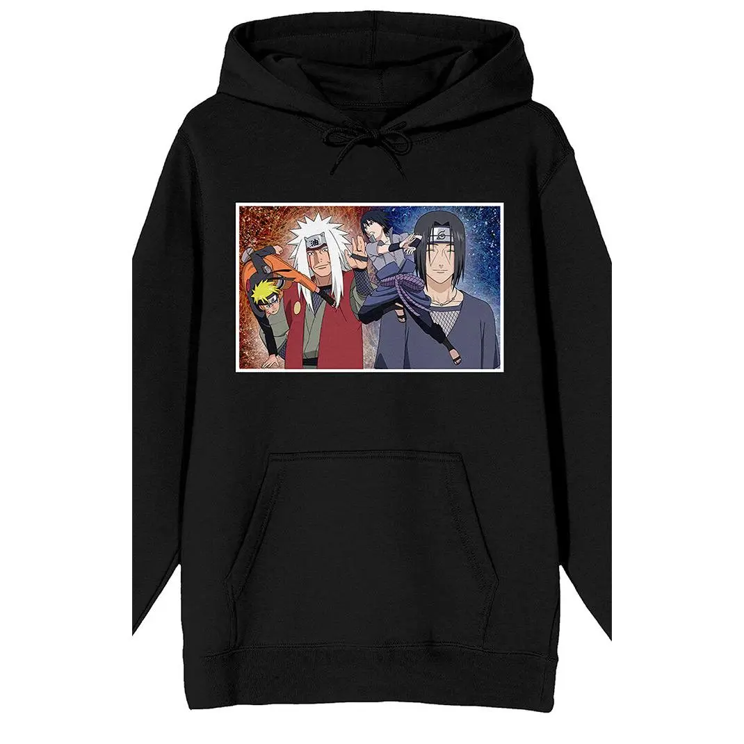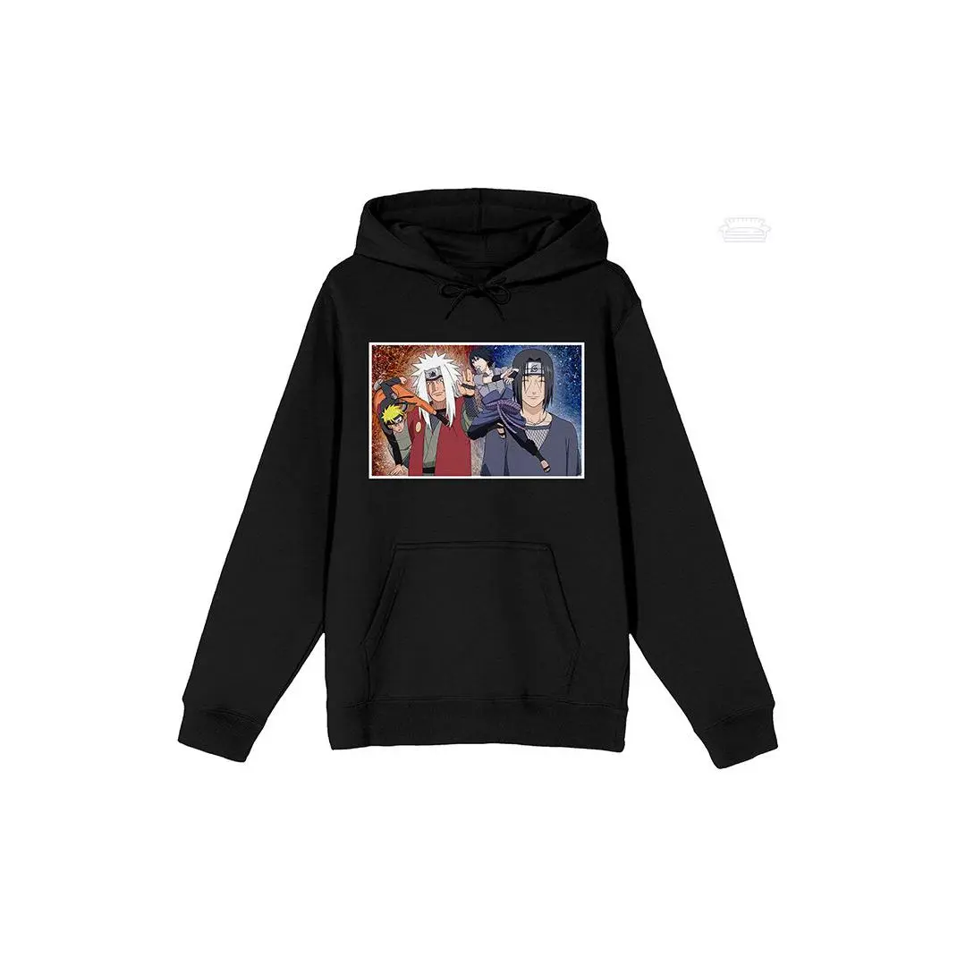 get ready for cool weather with this naruto shippuden uzumaki and sasuke fighting jiraiya itachi men's black hoodie! the naruto shippuden anime cartoon fan apparel is a men's black hooded sweatshirt made of a high-quality blend of polyester and cotton material and has an attached hood with a drawstring to keep your head and neck warm in cool weather. the men's naruto shippuden anime cartoon fan merchandise features a bold graphic of uzumaki and sasuke fighting jiraiya itachi against a black background, professionally printed for long-lasting color and print quality. the men's naruto shippuden anime black hoodie can be machine washed on cold with like colors and tumble dried on low for best care. this is an officially licensed product and makes a great gift for fans!