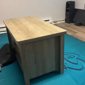 It's a little taller than I would like as the surface is above the seats of the couch, doesn't work well on hardwood floors as the bottom slides. As a coffee table it's a bit plain on the side that doesn't have panels. Color isn't as light as in the pictures. Function wise it seems sturdy.