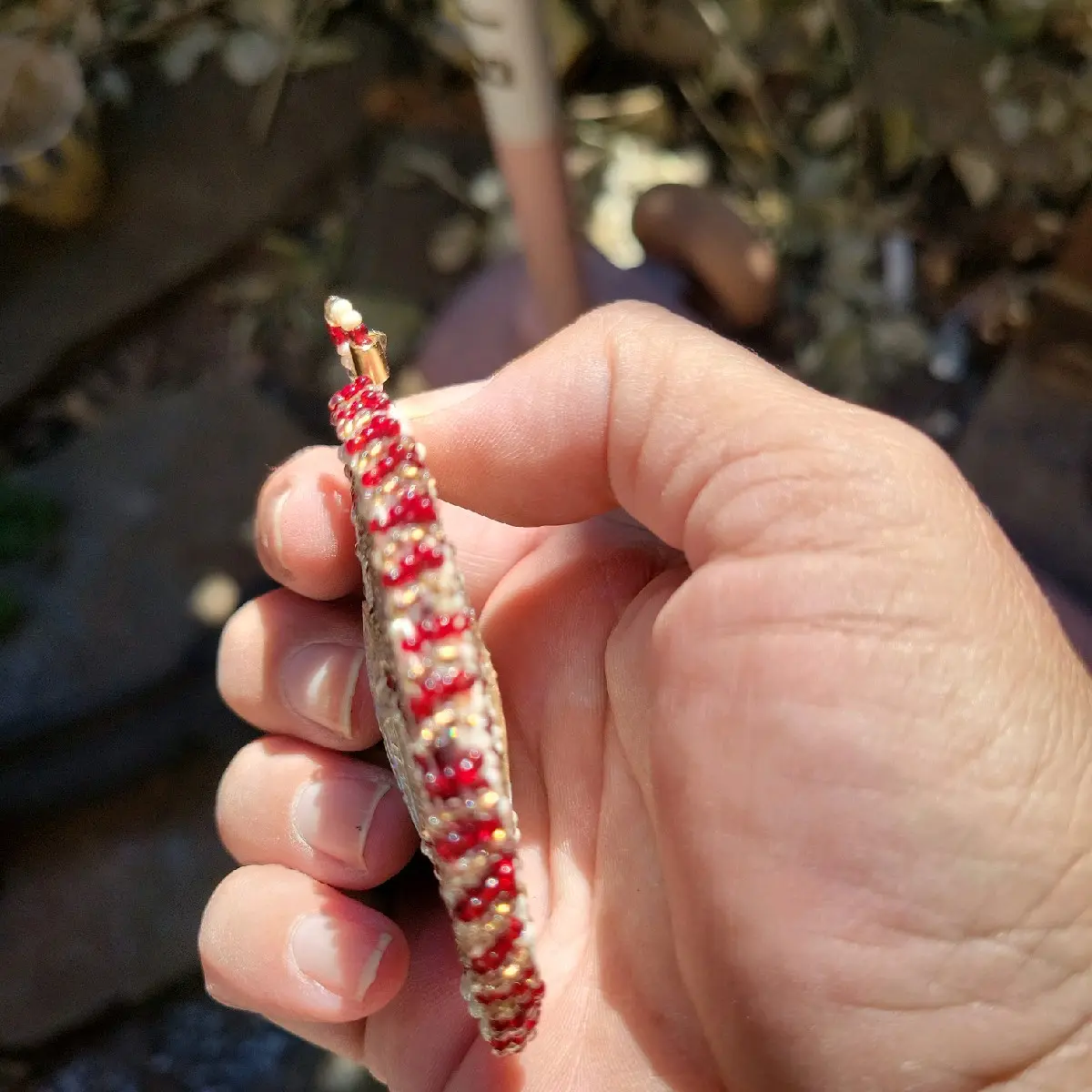 This beaded medallion is a stunning piece of jewelry that features garnet, gold, and pearl beads. The garnet beads are gorgeous, while the gold beads add a touch of luxury and elegance to the piece. The pearl beads add a subtle and sophisticated touch, making it a versatile accessory that can be worn with a variety of outfits.