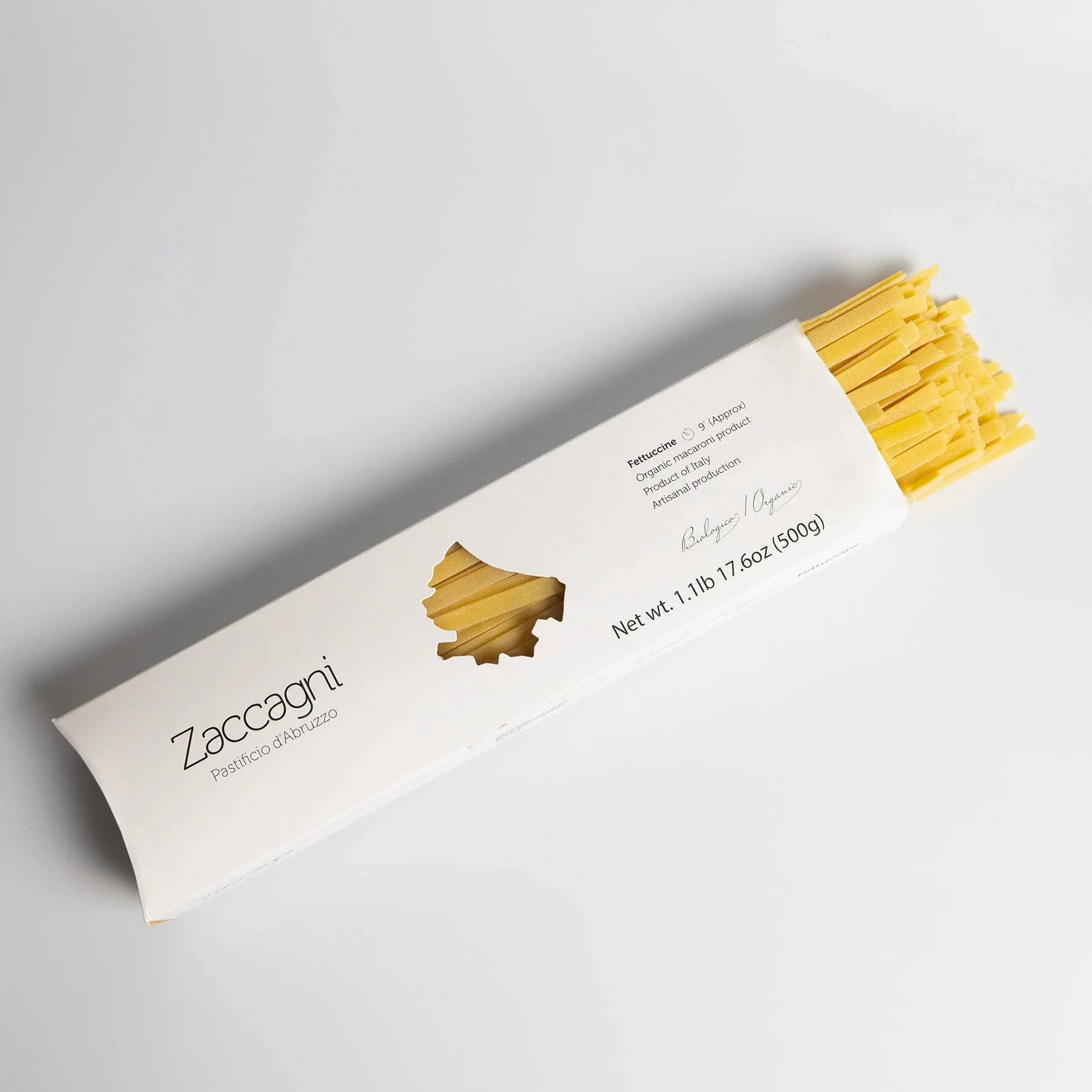 Elevate your everyday pasta with this organic fettuccine from Zaccagni, master pasta makers in Abruzzo. The flat ribbons of this pasta—whose name literally means “little ribbons”—are robust and flavorful thanks to the organic semolina flour they use. It’s perfectly suited to any of your favorite pasta dishes, from a comforting carbonara to simple pomodoro.