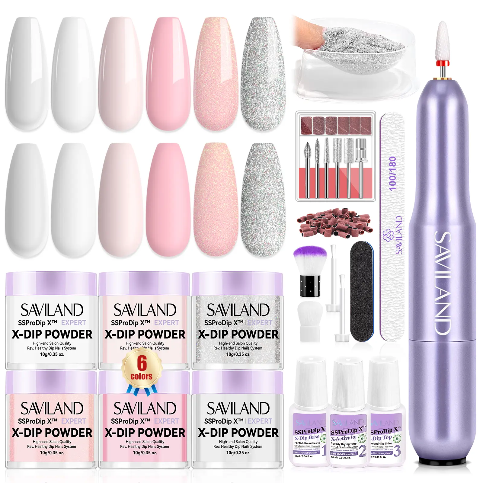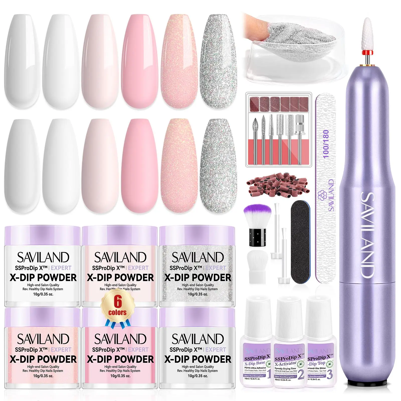 ·Hexa-NutriStrengthen Dip Powder Nail Kit with Electric Nail Drill: Get the SSProDip X Nails Dip Powder Kit with 6 vibrant colors, a nail drill kit, and essential tools for a stunning nail style. Easy to use, this set ensures you shine at any occasion with effortless beauty.