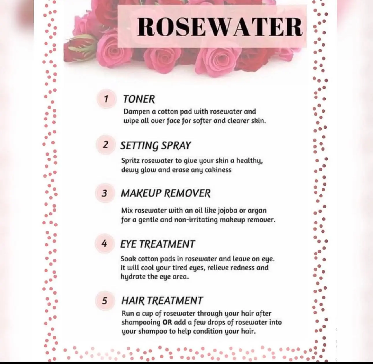 ·AsaFacial Mist: Spray a fine mist of rose water over your face throughout the day to refresh and hydrate your skin.