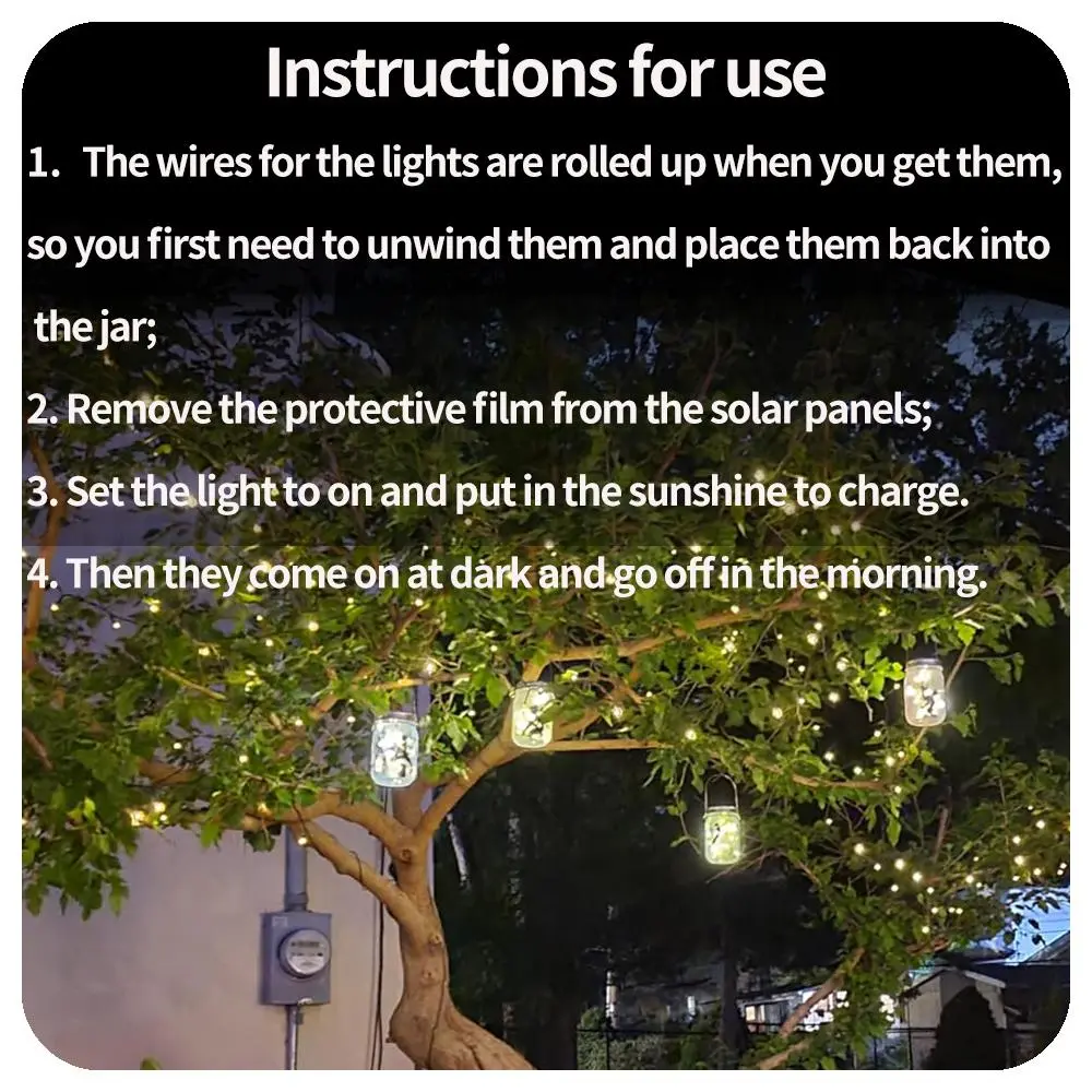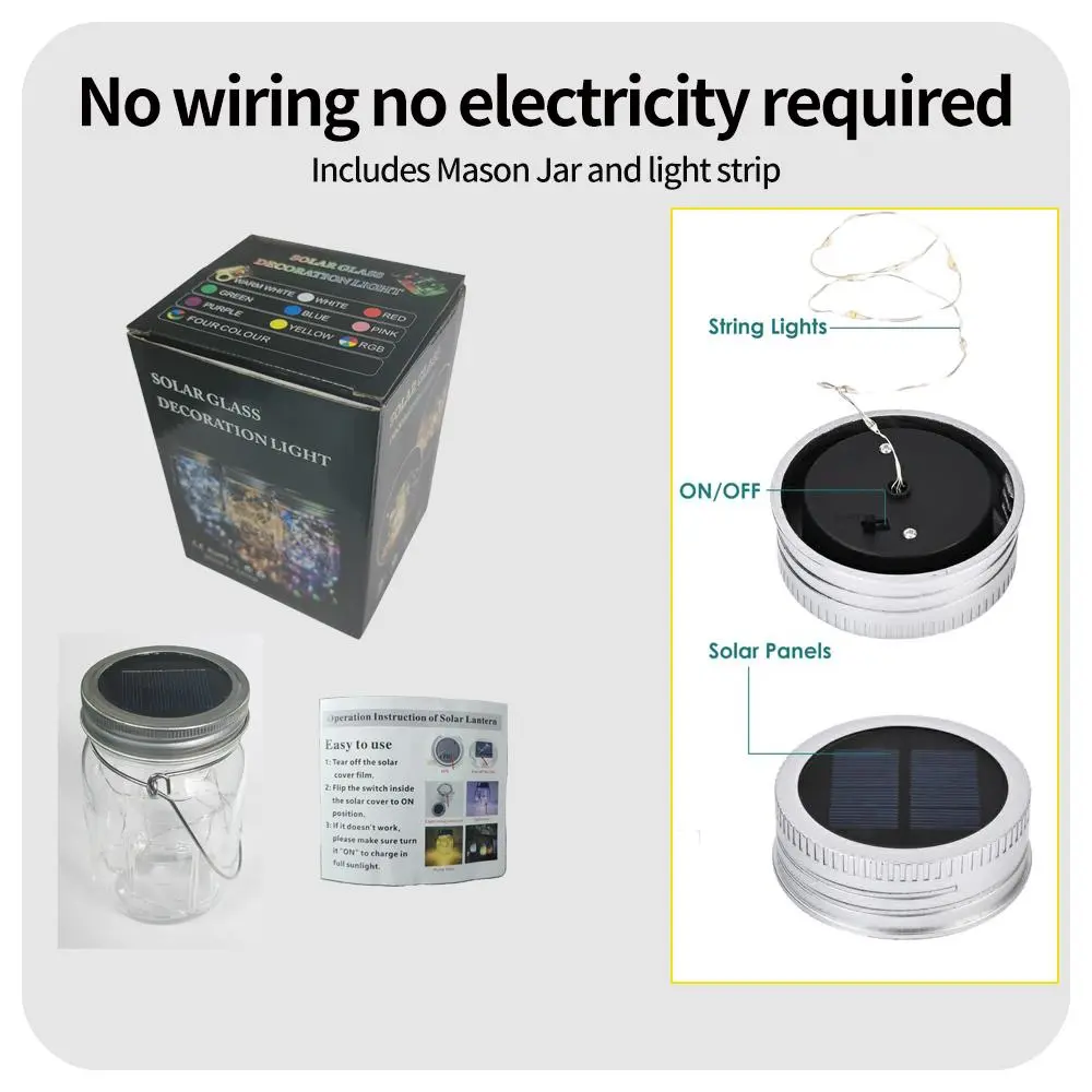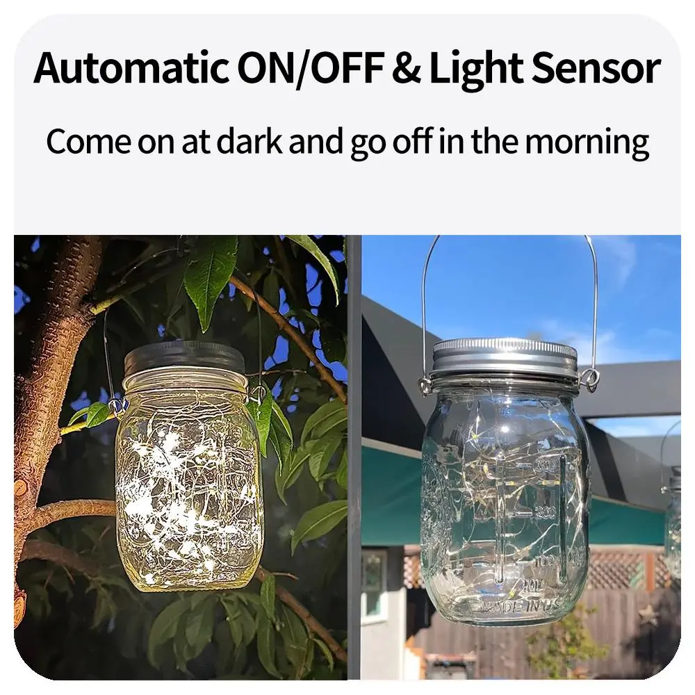 Solar Powered Mason Jar Light, LED String Light, Waterproof Mason Jar Light with Hanger, Outdoor Decorative Light for Garden, Patio, Roof Deck, Fence