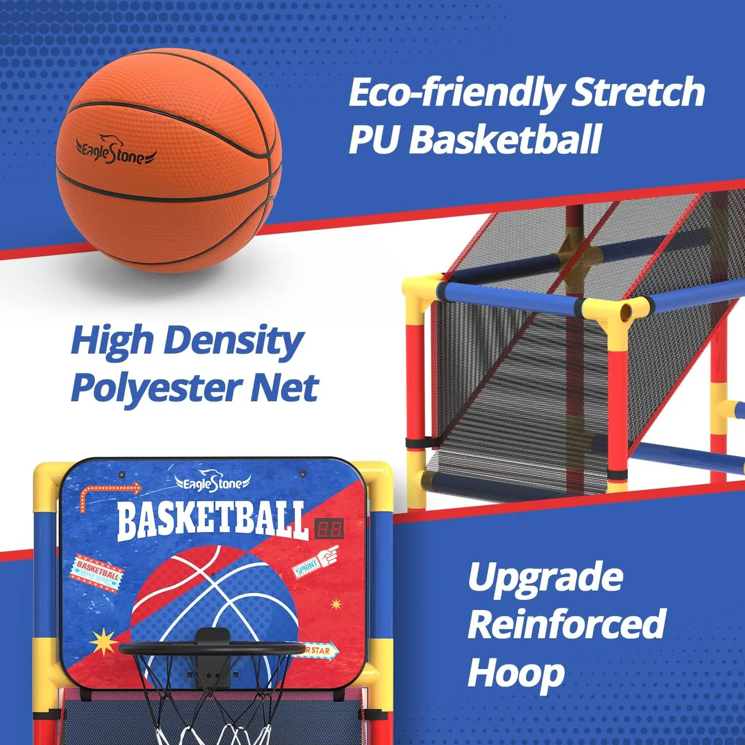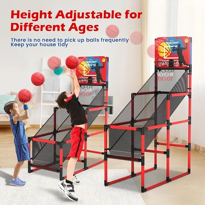 ·【Adjustable Height】You can adjust the basketball stand height according to age. This indoor basketball arcade game can be placed indoors and outdoors: basement, games room, garage, backyard.