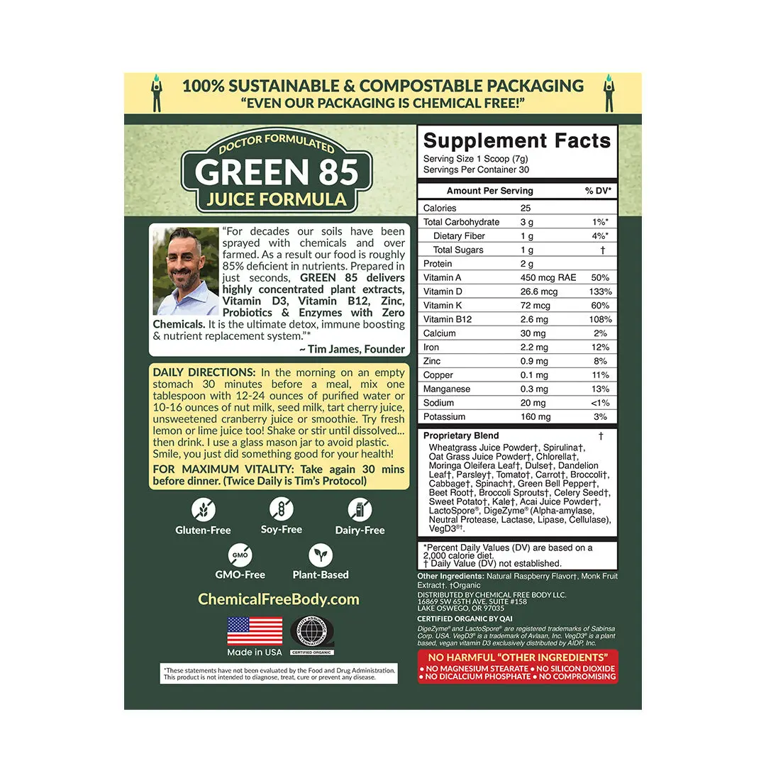 Pro Tip: Combine Green 85 with our Gut Detox supplement for amplified detox and digestive wellness benefits.