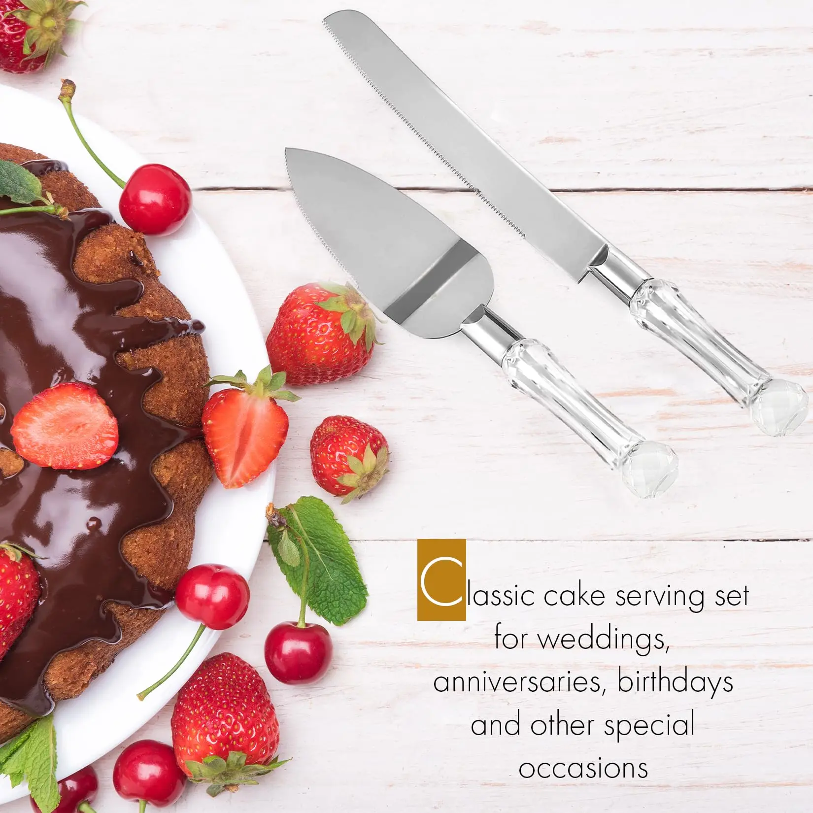 ·Efficient Serving: The serrated blades of the knife and spatula along with their non-slip ball handles allow for easy and mess-free slicing of cakes.