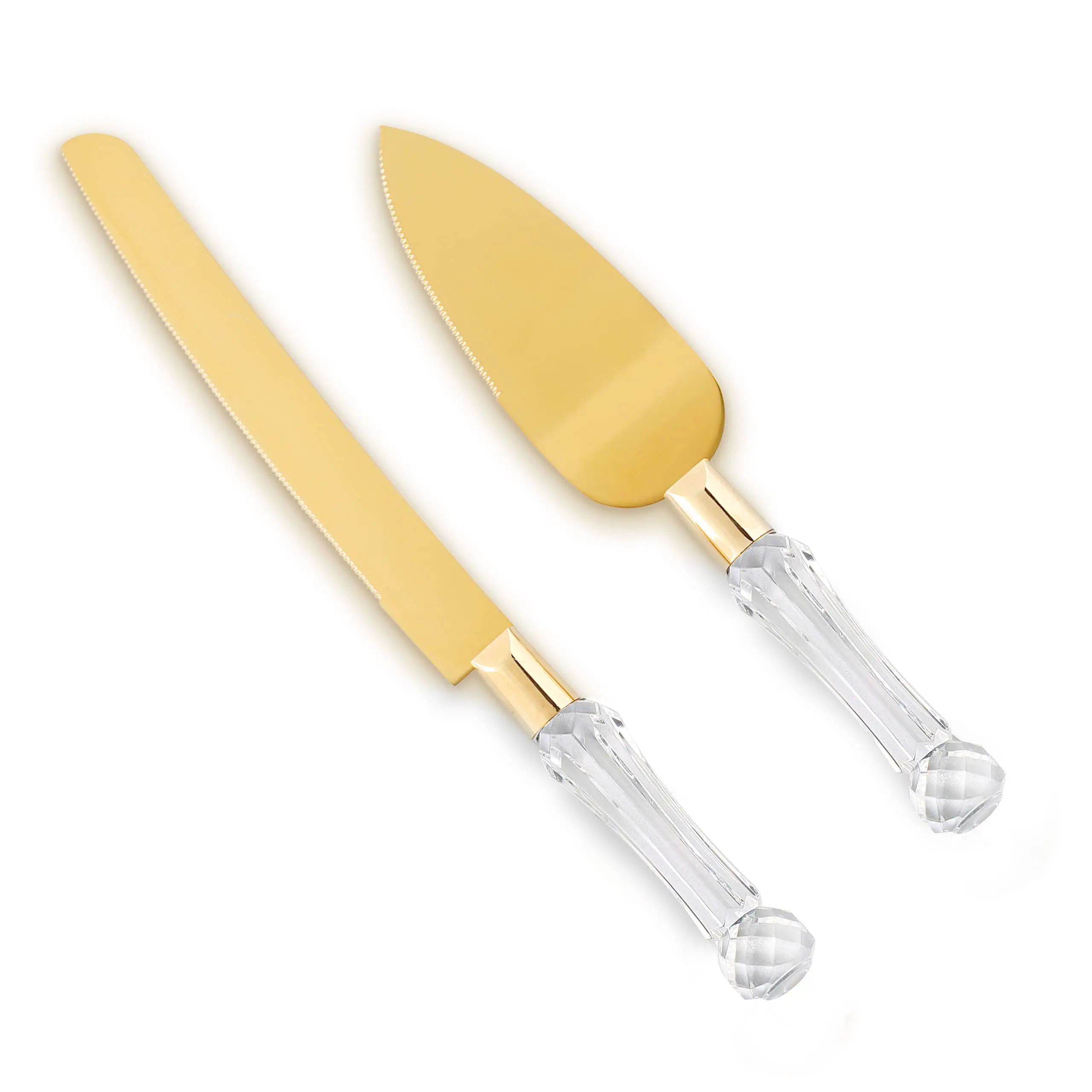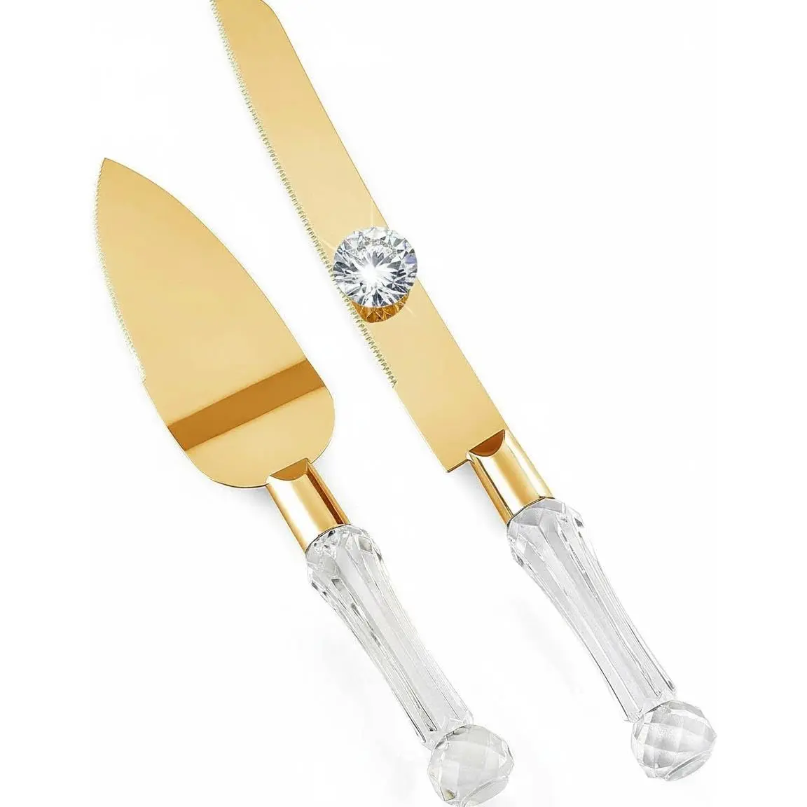 wedding knife and server set gold, Gold Cake Cutter and Pie Spatula, Cake Server and Knife Set of 2 with Crystal Handles, 1.2mm Thick Blades,Cake Cutting Set for Wedding Cake, Birthdays, and Parties