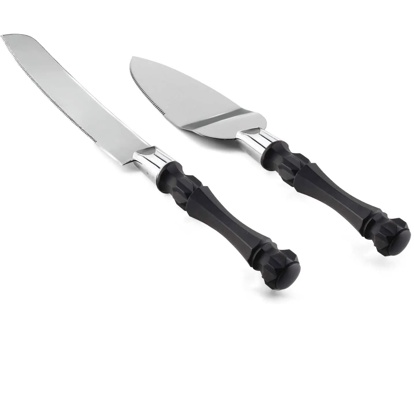 Homi styles Black Cake Knife and Server Set, Cake Cutter and Pie Spatula, Cake Server and Knife Set of 2 with Non-Slip Swirl Grip, Matte Black Cake Cutting Set for Wedding Cake, Birthdays, and Parties