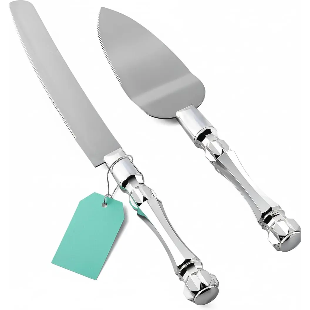 Elevate your cake-serving experience with this versatile Cake Knife and Server Set, designed for both weddings and birthdays. This set includes a cake cutter, pie spatula, and cake server, all featuring elegant acrylic crystal handles.