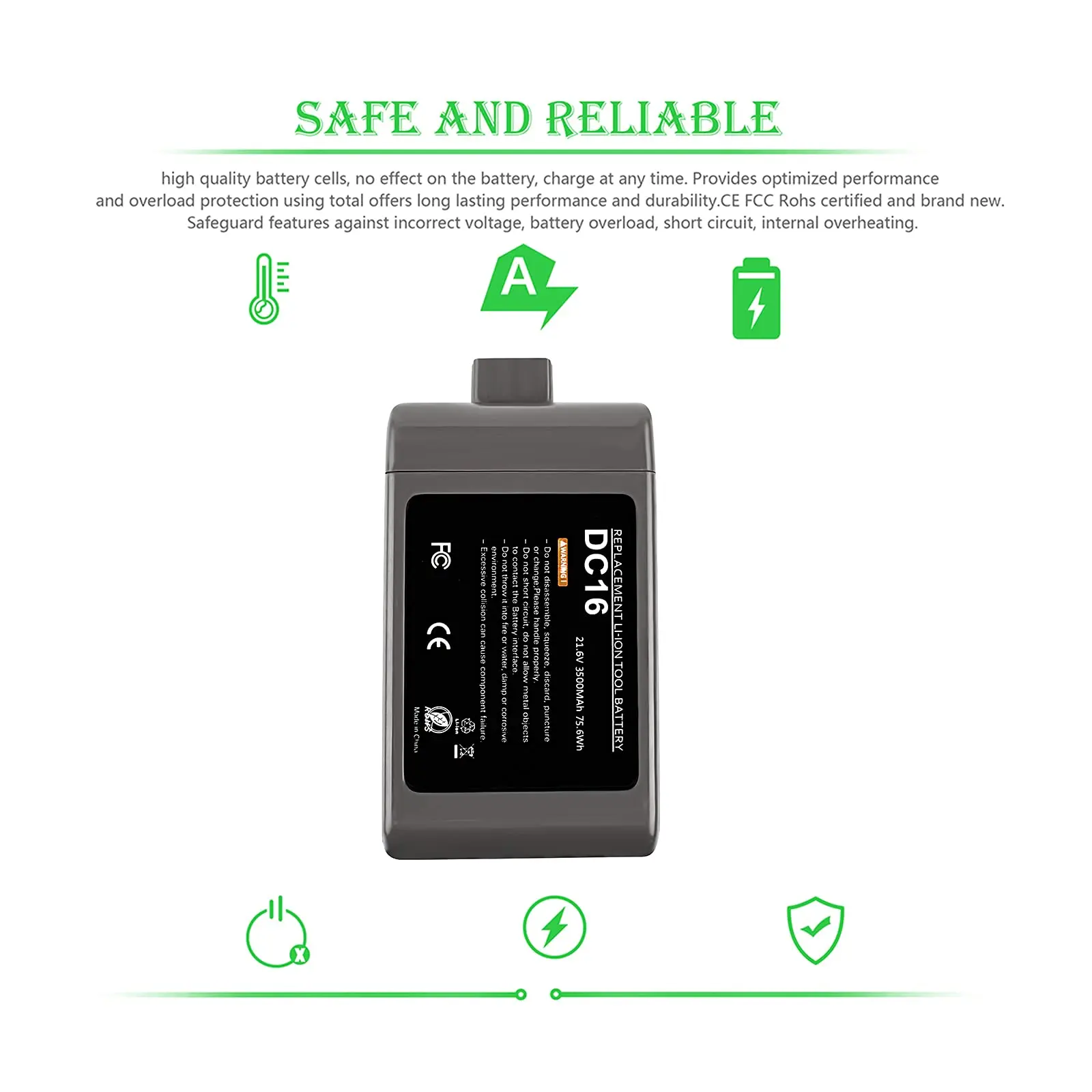 ·The DC16 Replacement battery 100% compatible with Dyson DC16 Root 6, DC16 Animal, DC16 Issey Miyake Exclusive, DC16 Pink Vacuum Cleaner,Motorhead Cordless Vacuum Cleaner