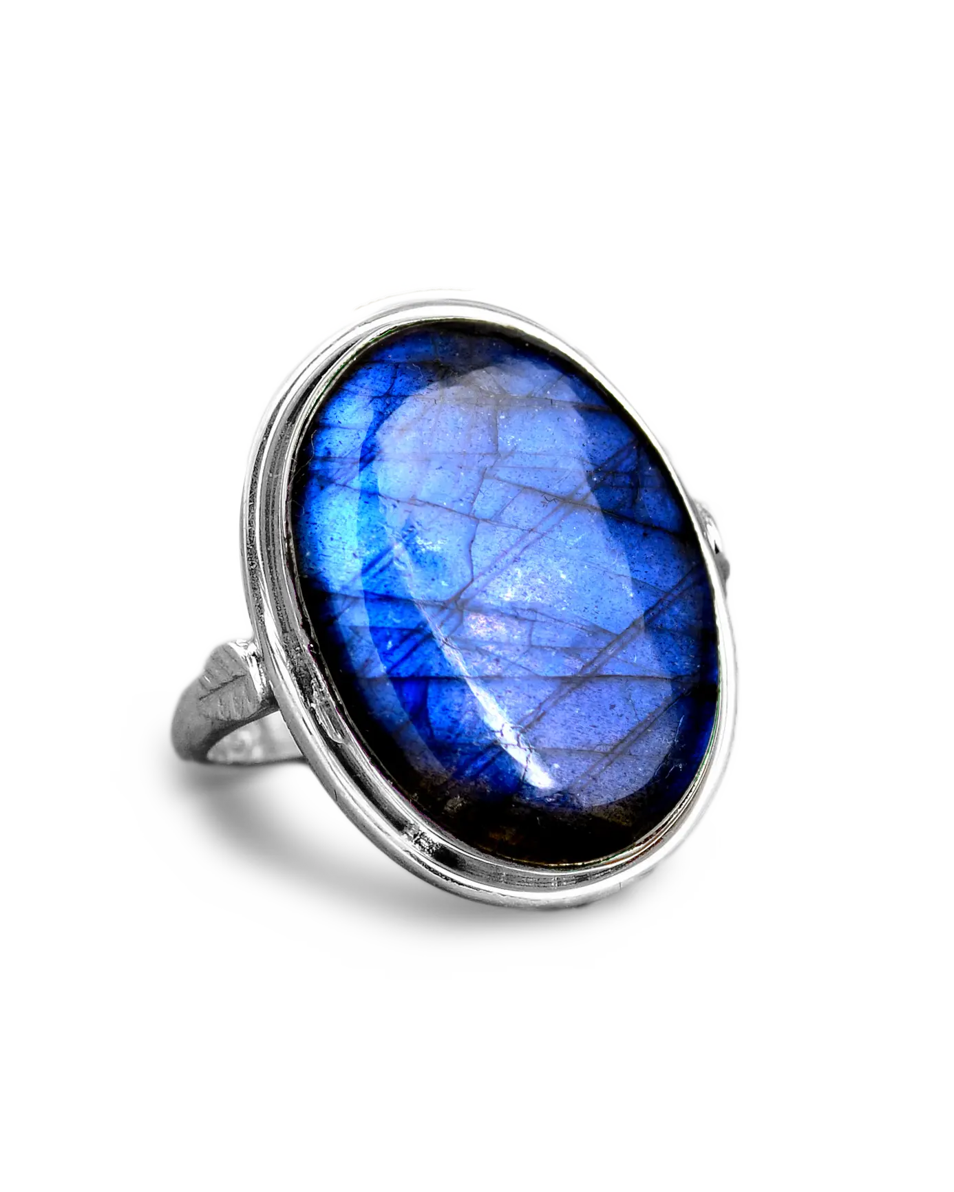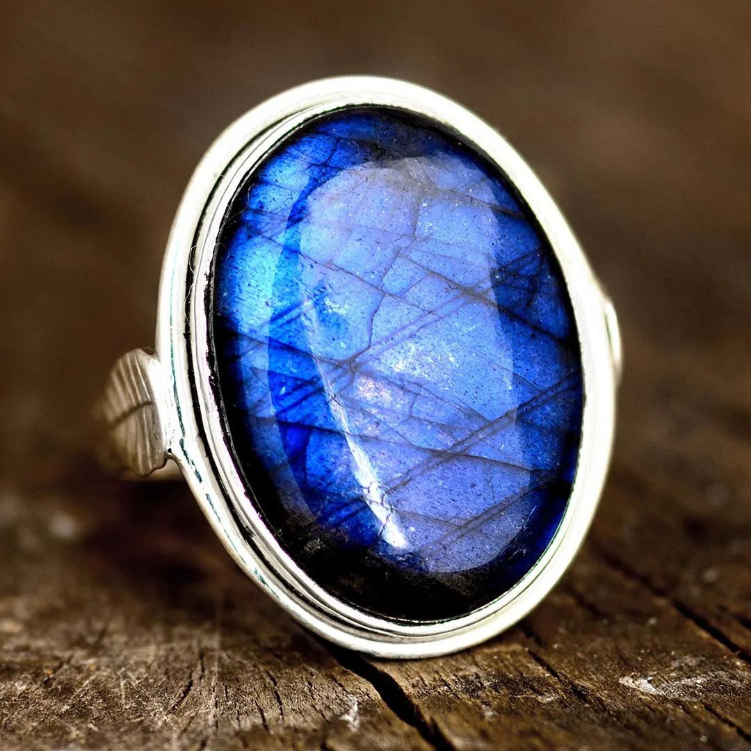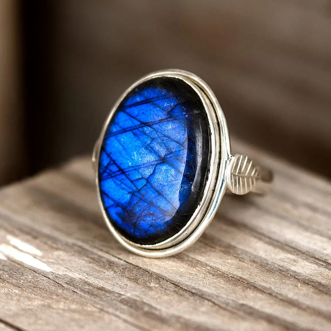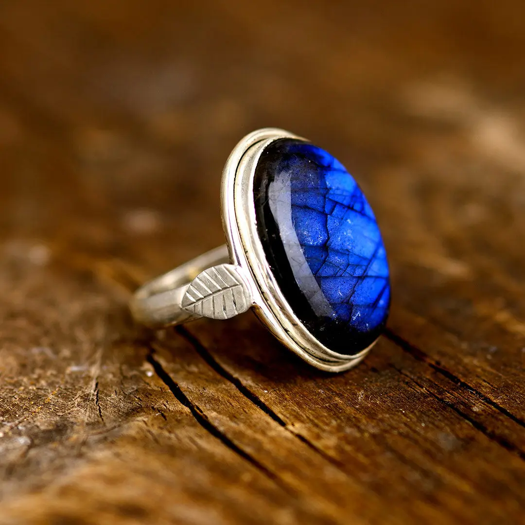 The blue labradorite is exquisite. I love the way it shimmers in the light. Beautiful ring.