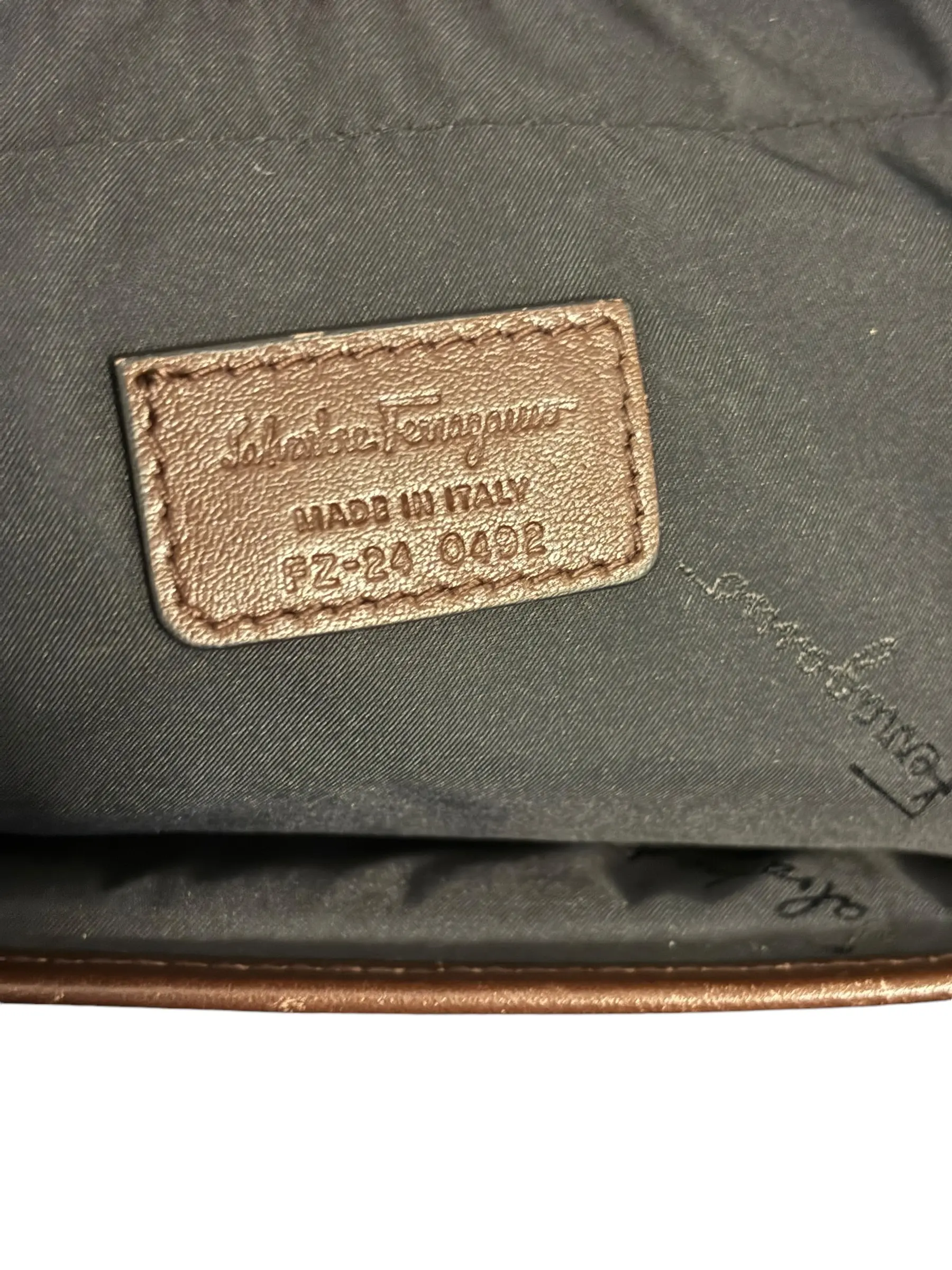The iconic Ferragamo logo appears at the front, representing quality and sophistication. Lined with logo jacquard, the interior reflects attention to detail typical of Italian craftsmanship.