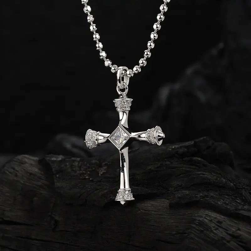 5. Euro-american wind sterling silver inset zircon cross necklace short men and women commuter ins cold wind necklace