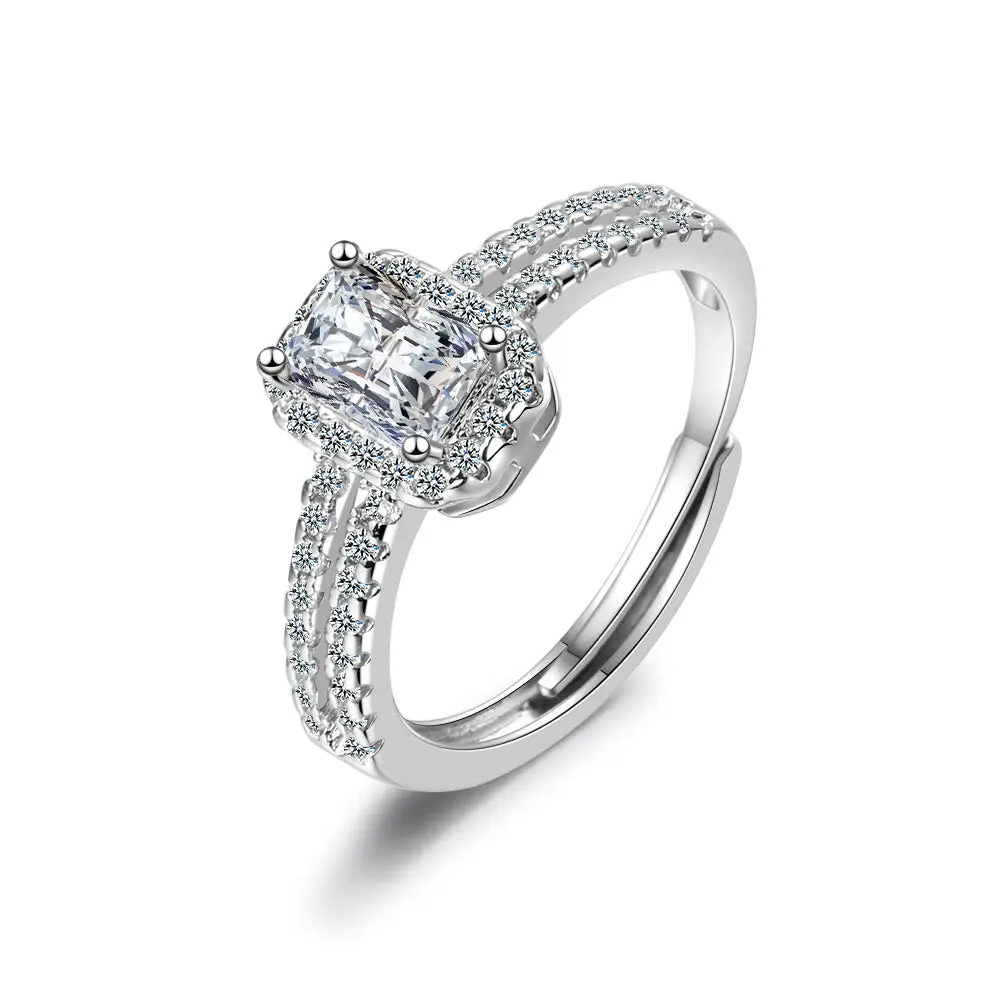 Double Row Princess Cut Men's Sterling Silver Wedding Band Engagement Ring with Cubic Zirconia 7.5mm Sizes 7 to 13