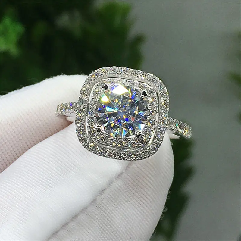 Womens 1.5 Carats Sterling Silver Bridal-Set Engagement Wedding Ring Cubic Zirconia 8MM