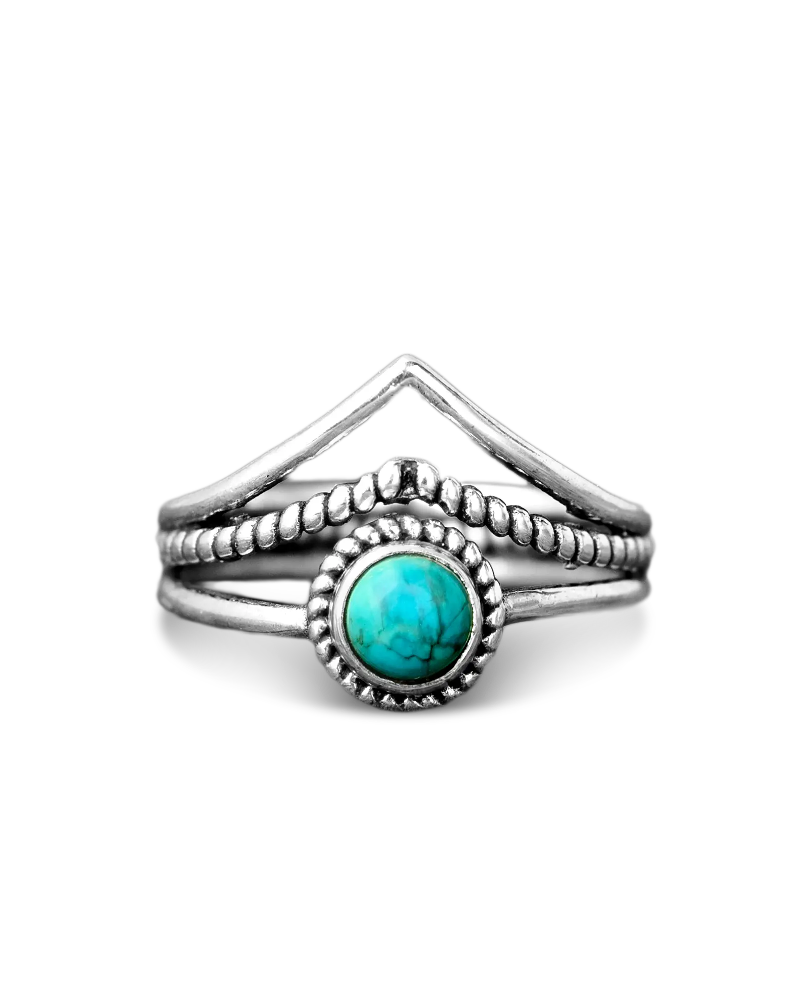 Triple Chevron Ring with Turquoise. Made of sterling silver. it can be worn as a traditional ring or as a trendy thumb ring for a boho touch.