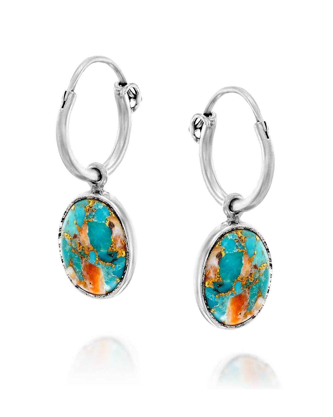 Oval oyster copper turquoise gemstone earrings set in sparkling sterling silver. These earrings will allow you to take the ocean with you wherever you go as the unique gemstones have ethically harvested real oyster shells. These gems are truly a unique blend of water and earth magic! Plus, with a leverback closure, these beauties will always stay secure.