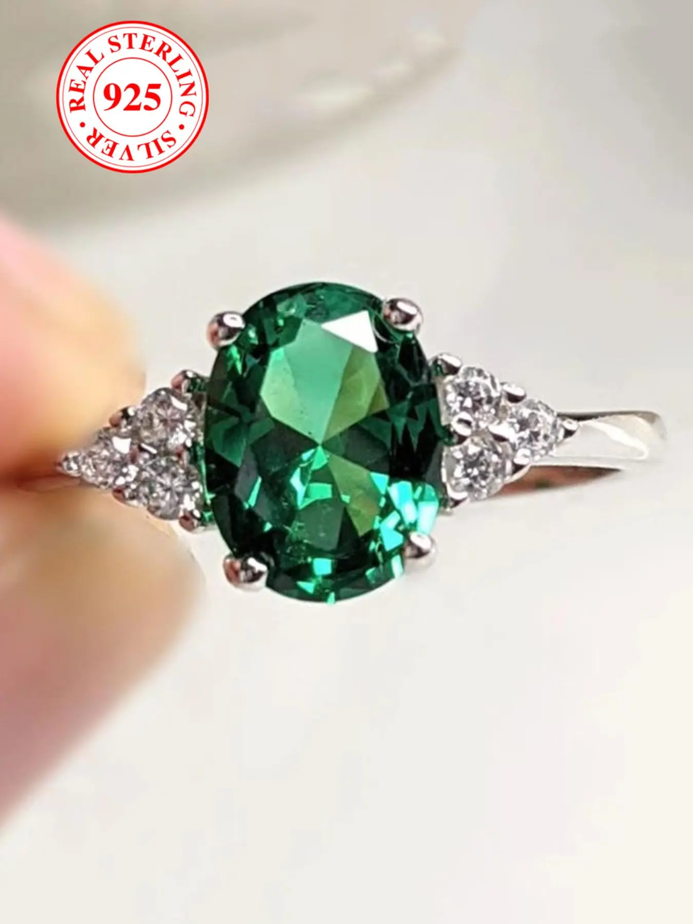 S925 Sterling Silver Oval Shaped Green Artificial Zircon Decor Ring, Elegant Bridal Engagement Ring for Women, Trendy All-match & Exquisite Jewelry for Birthday Gift