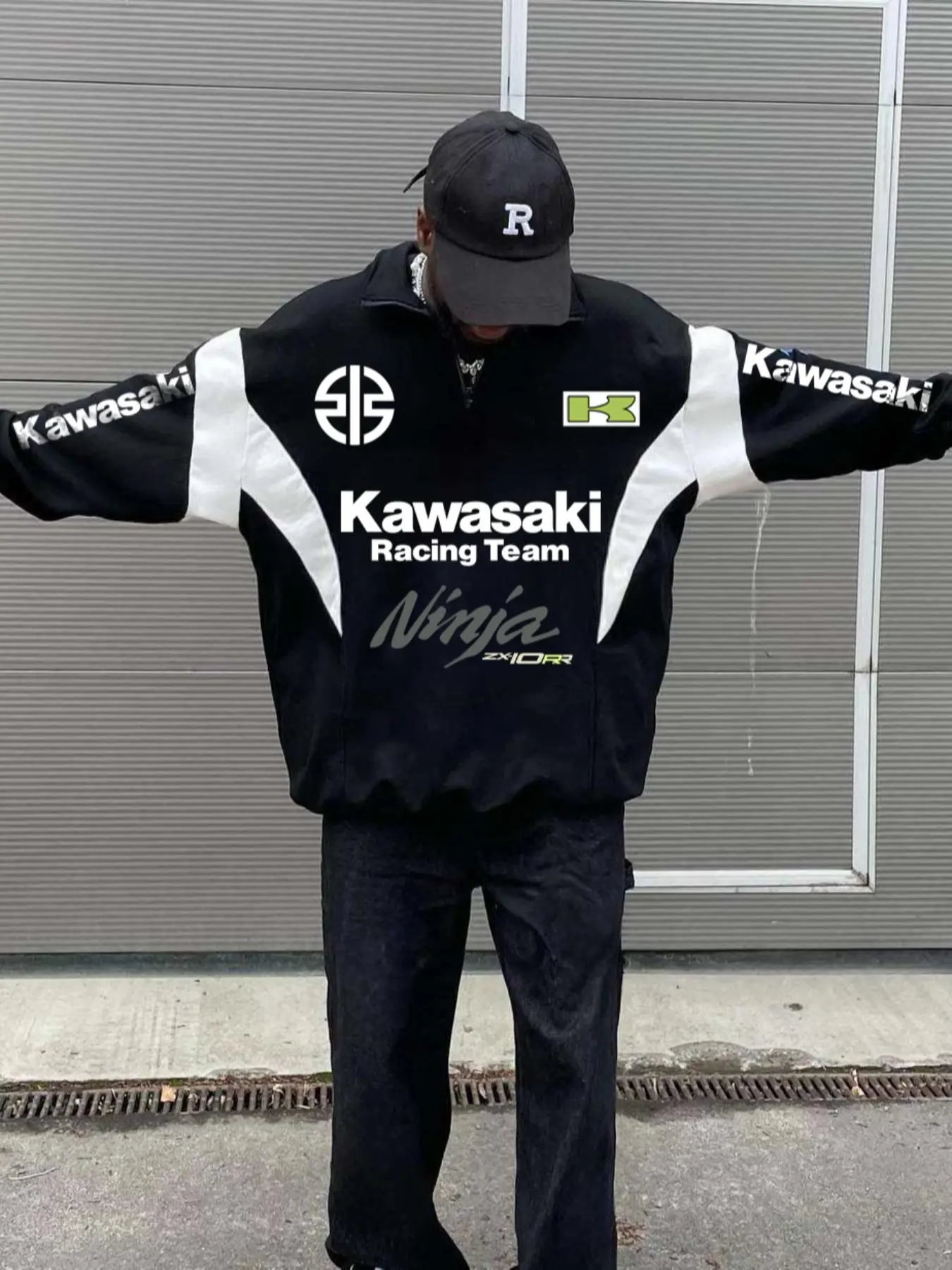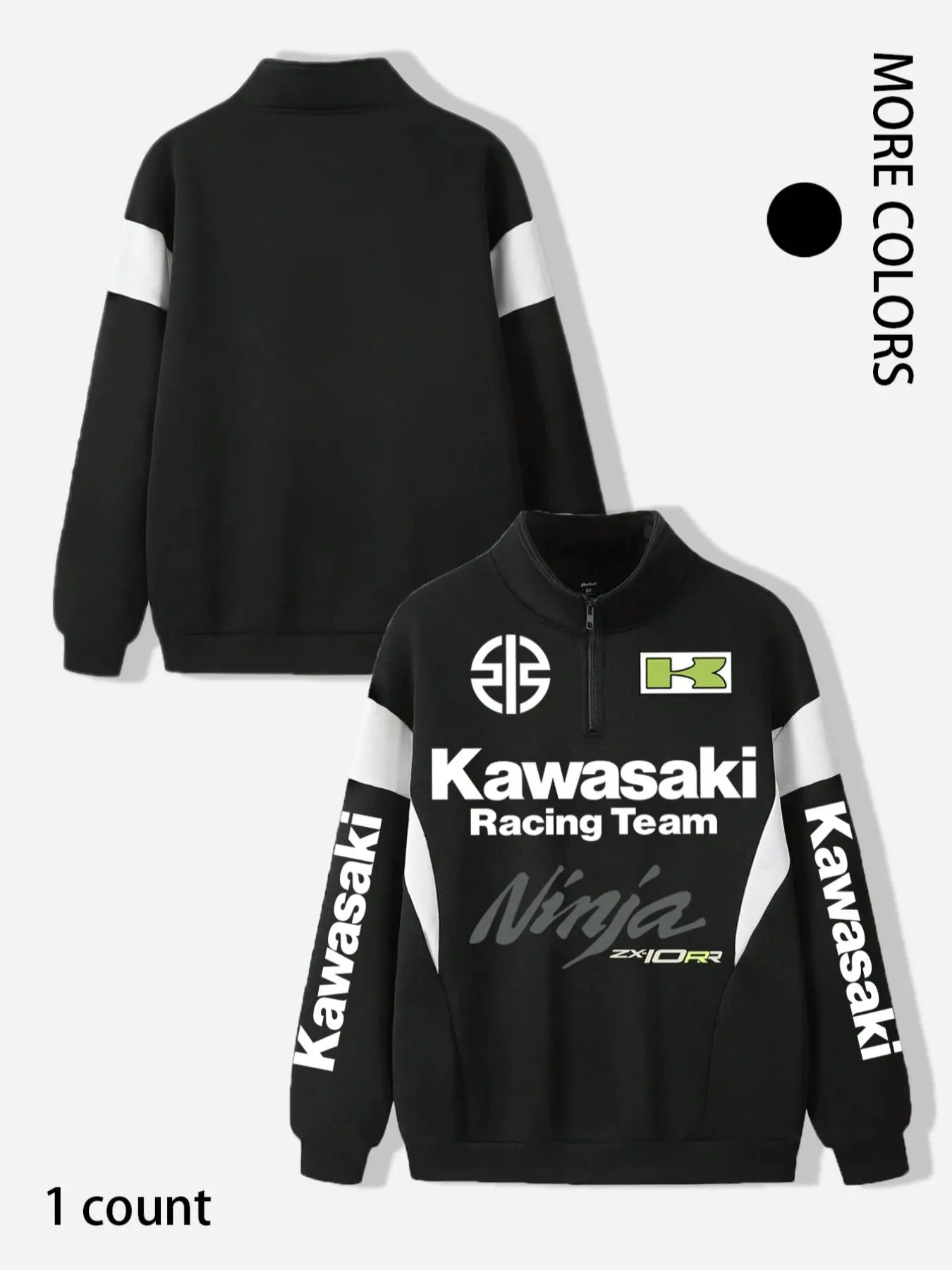 Men's Kawasaki Racing Team Graphic Zip Up Sweatshirt, Regular Fit Casual Fashion Long Sleeve Half Zip Sweatshirt for Daily Wear, Men's Clothes for Fall & Winter, Athletic Sports Clothing