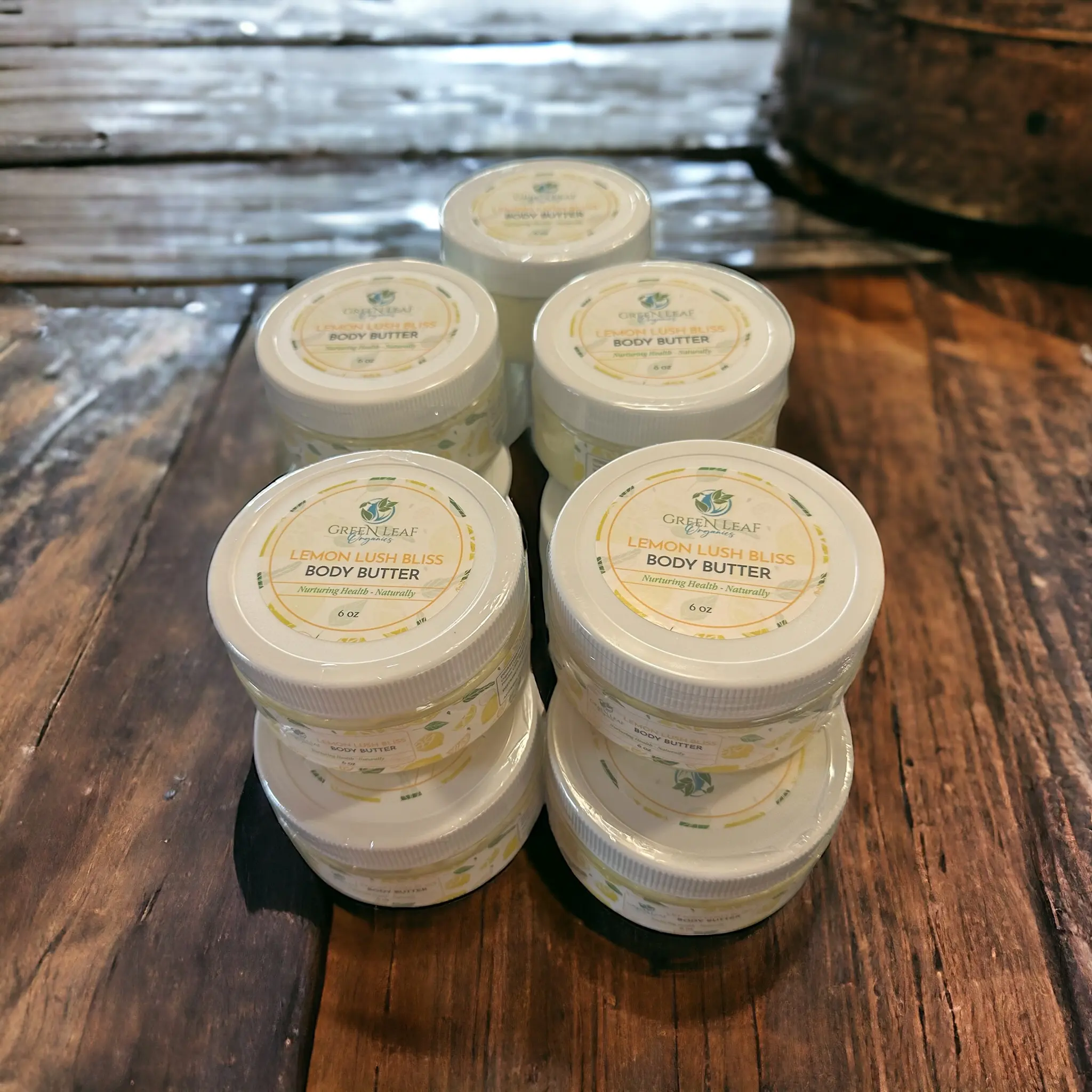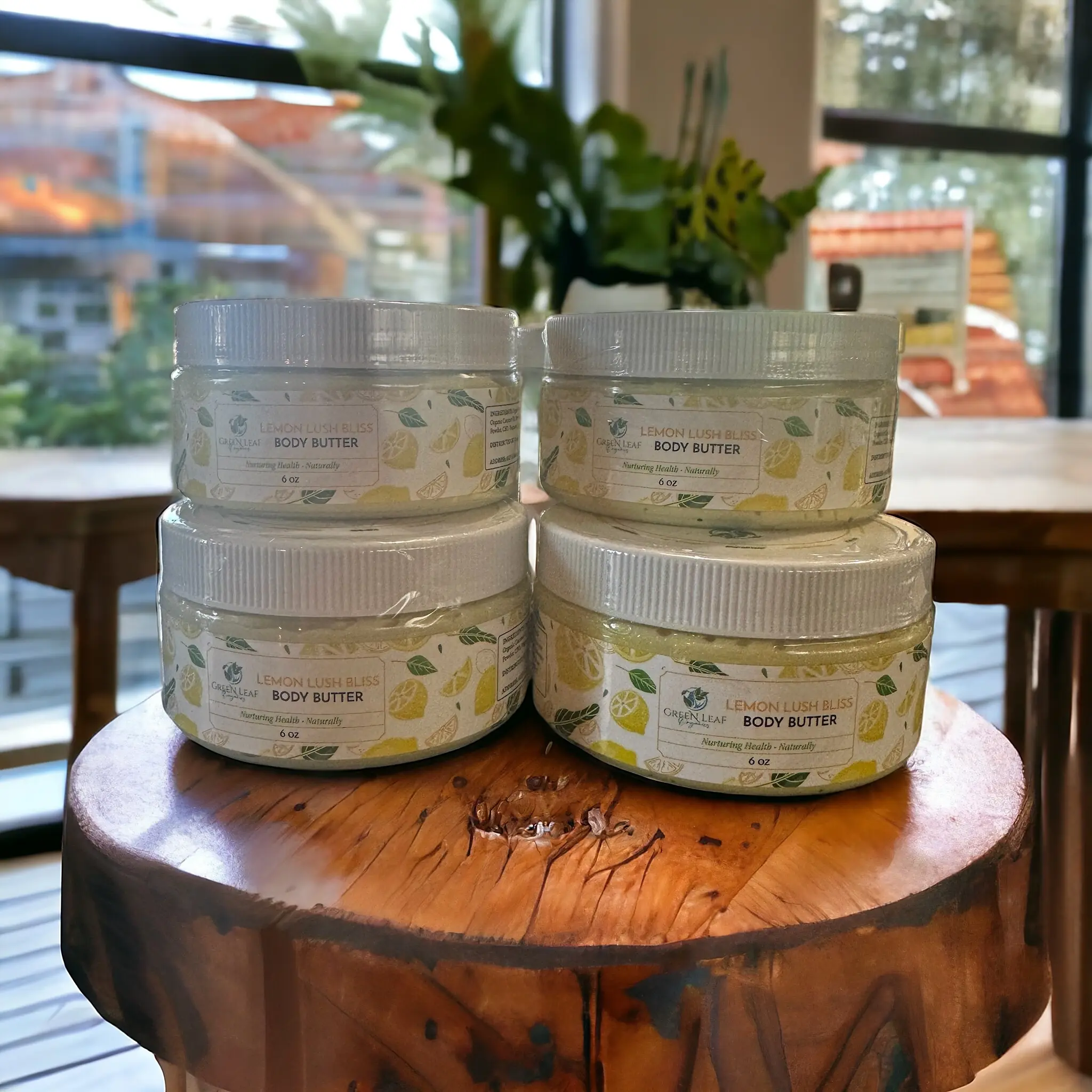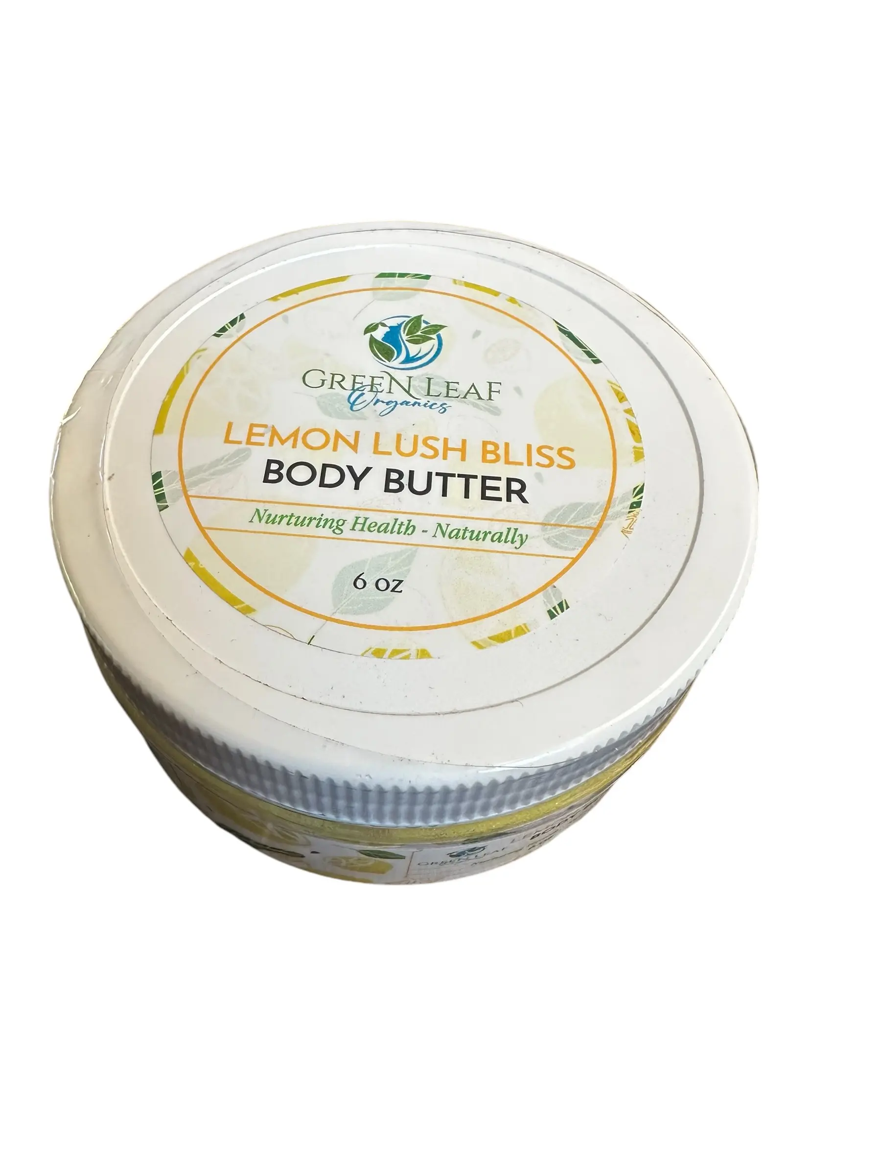 Indulge in the refreshing Lemon Lush Bliss Body Butter by Green Leaf Organics, a luxurious body cream that pampers your skin with organic ingredients.