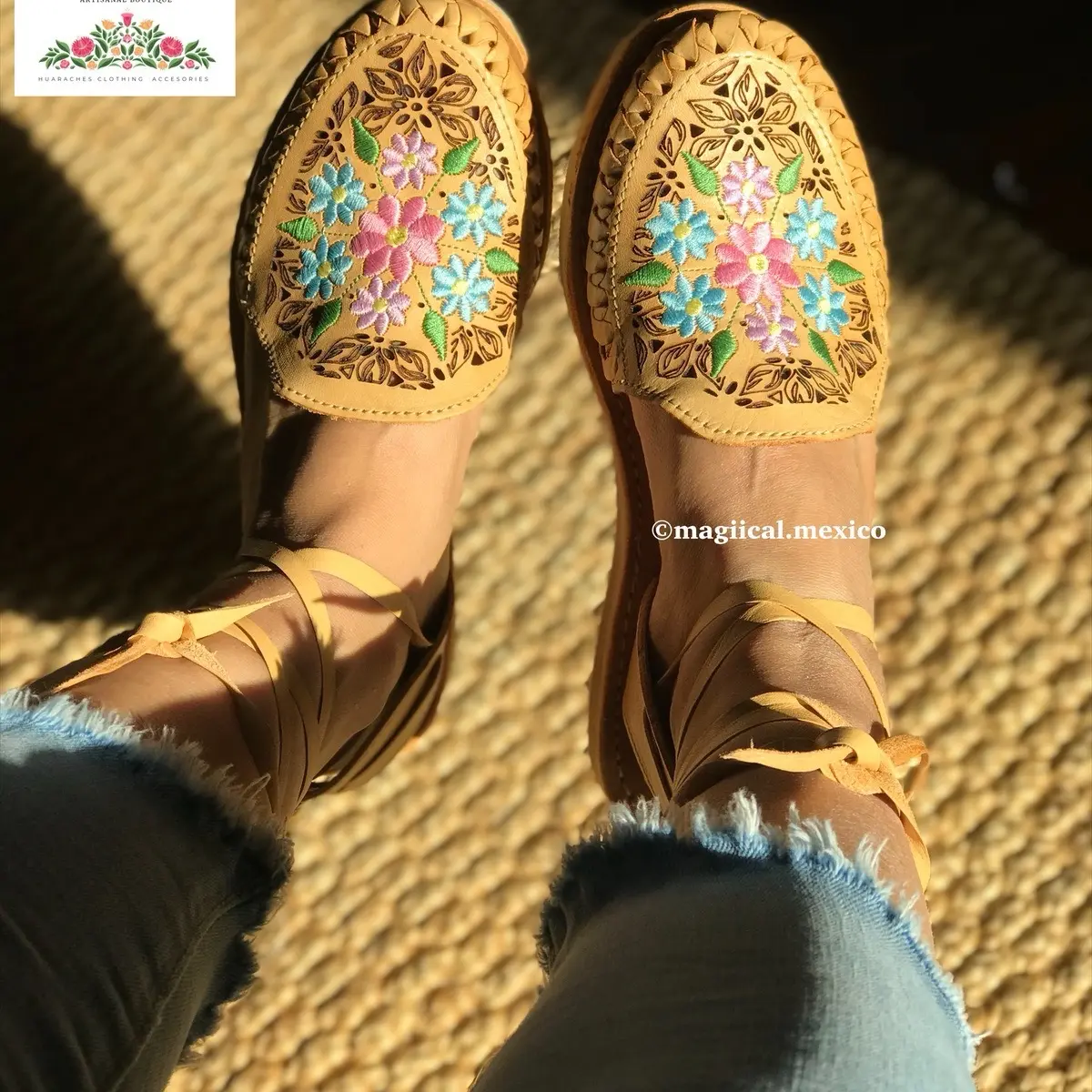 Huarache sandals women embroidered/ Mexican leather sandals women/ huarache artesanales de mujer / summer shoes women