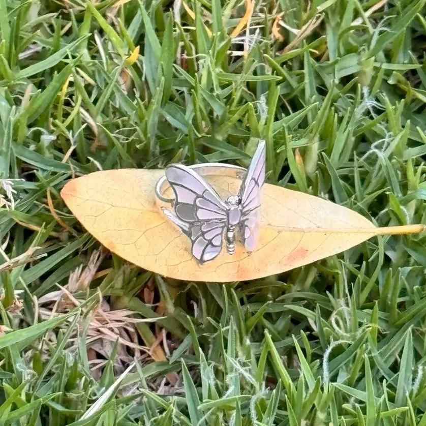 Mother of Pearl Sterling Silver Butterfly Ring, 925 Statement Ring, Stamped Guaranteed,Gift for Her Gift Ideas 2025