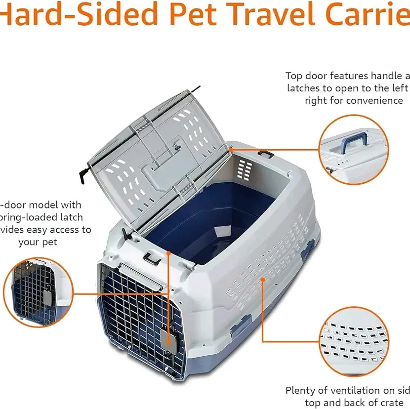 Introducing the Amazon Basics 2-Door Top-Load Hard-Sided Dogs, Cats Pet Travel Carrier, a must-have for pet owners who love to travel with their furry friends. This carrier is designed to provide a safe and secure environment for your pets during travel. The top-load design allows for easy access to the carrier, making it convenient for you to put your pet in and out.