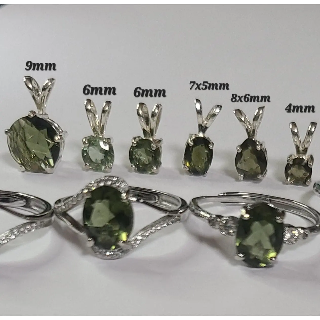 A one of a kind ring or stackable piece of the stars! Perfect for a minimalist look or an accent. Moldavite sizes range from 4mm to 9mm set in solid Sterling Silver.