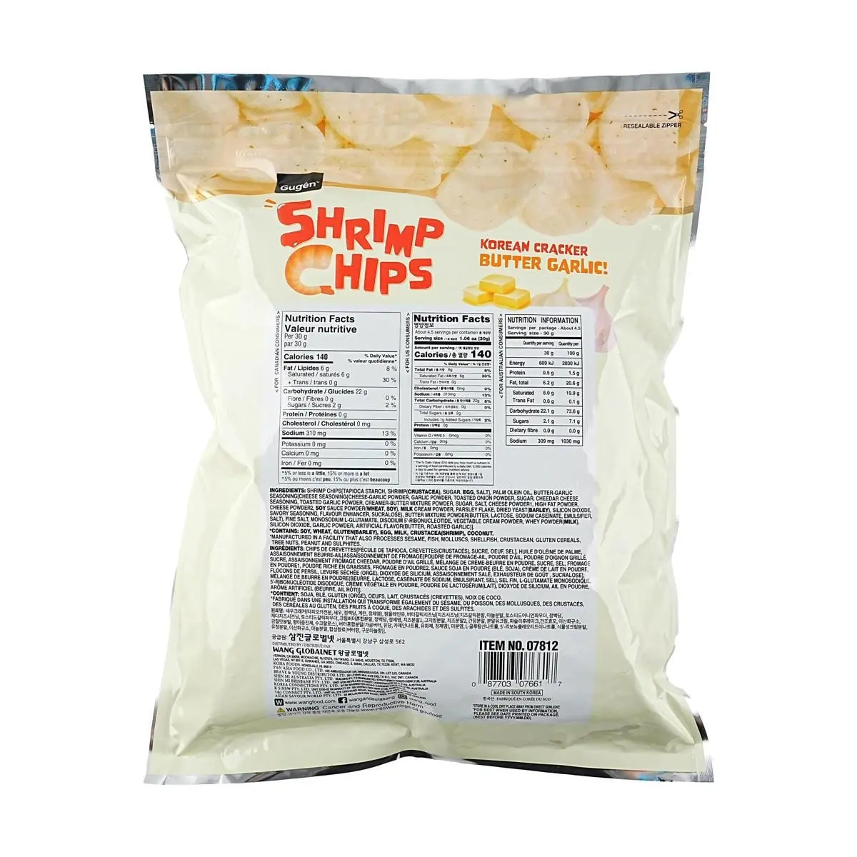 Whether you're a seafood enthusiast or just looking for a unique snack, Gugan Butter Garlic Shrimp Chips are sure to make a splash! Dive into a 4.59 oz bag today and taste the ocean in every crunch! 🌊🎏