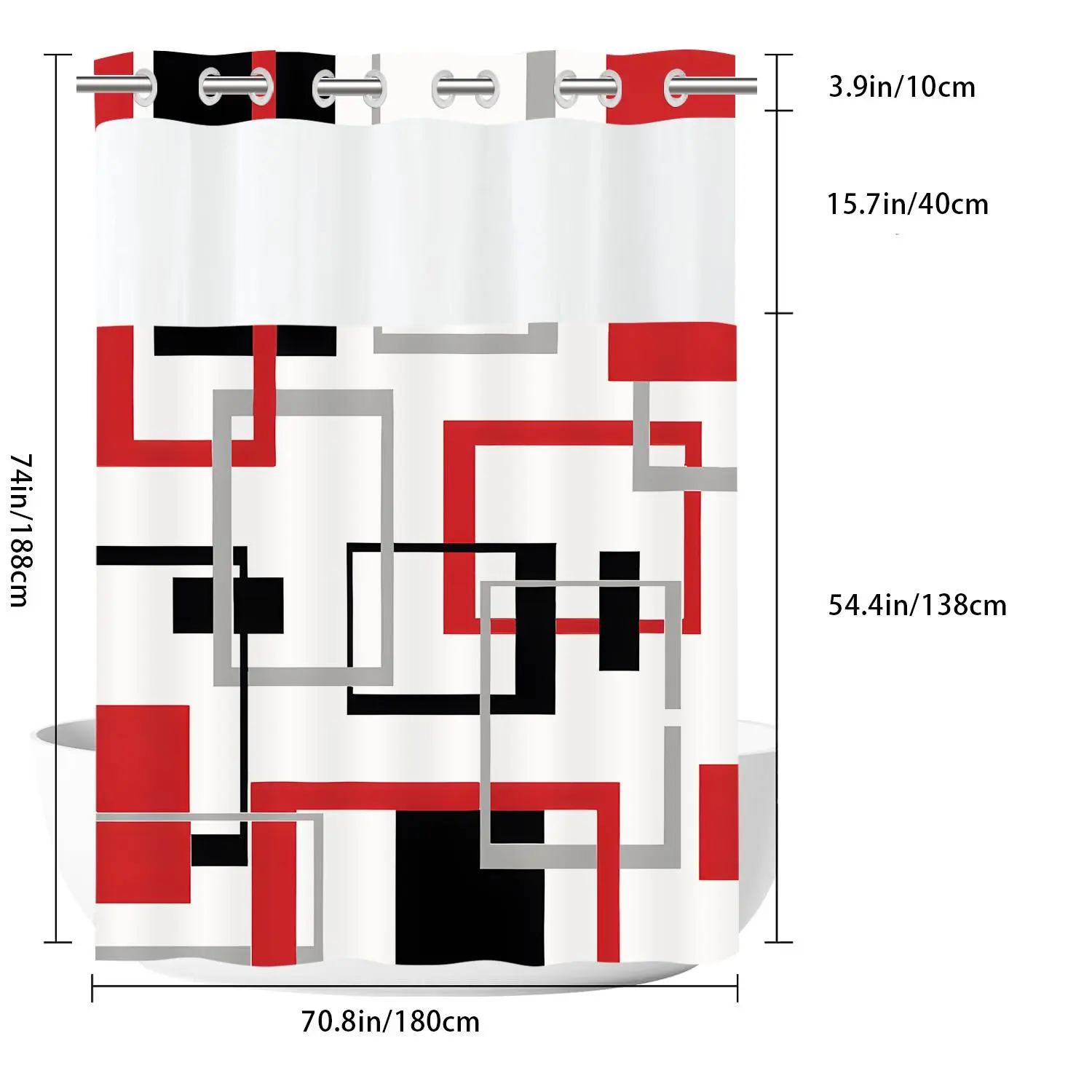 Me encantó la cortina económica, es solamente un tamaño, el tamaño es perfecto para mi baño, si tú cuelga su cortina más arriba es pequeña anteriormente, compré una que era bien larga y la tuve que cortar, pero esa está exacta a mi baño, me encantó mucho, lo recomiendo mucho