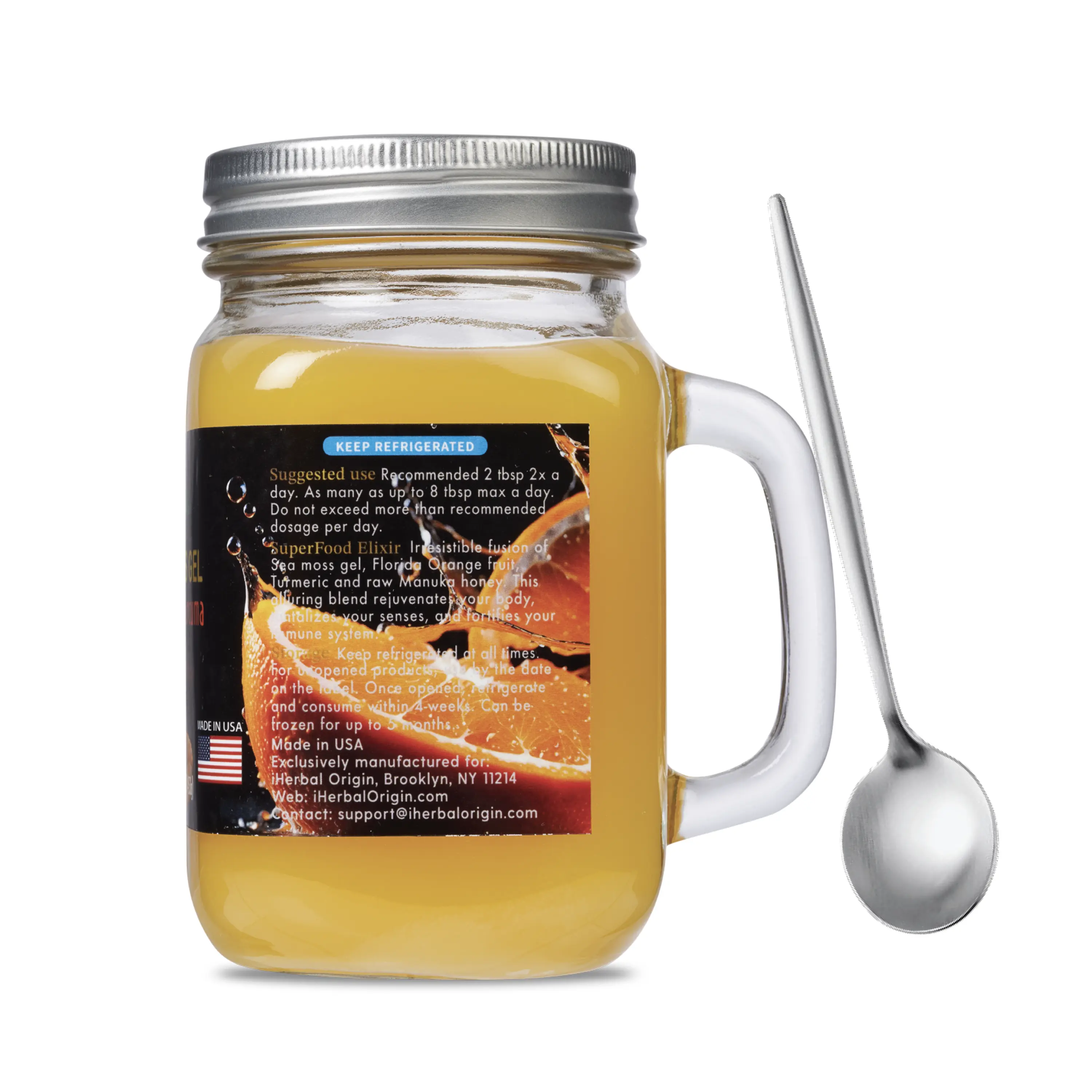 Blending Sea Moss gel, orange juice, turmeric, and Manuka honey create a remarkable fusion of superfoods, offering a wealth of health benefits in a single, nutrient-packed drink. Sea Moss, known for its exceptional mineral content, delivers 92 out of the 102 essential nutrients the body needs. This makes it a powerful supporter of overall wellness, especially for thyroid function, bone health, and digestive balance. It also promotes radiant, youthful skin by boosting collagen production, making it a natural choice for enhancing both internal and external vitality.