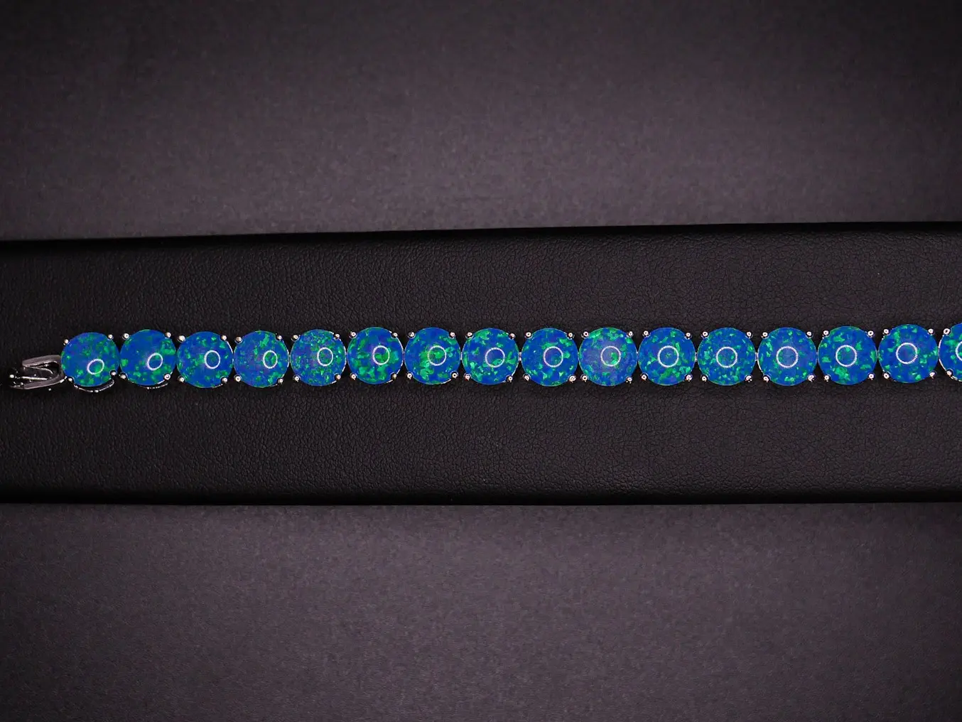 8mm cultured opal bracelet, the perfect addition to any jewelry collection! Handcrafted with care, this bracelet features gorgeous blue opal stones that shimmer in the light and catch the eye.