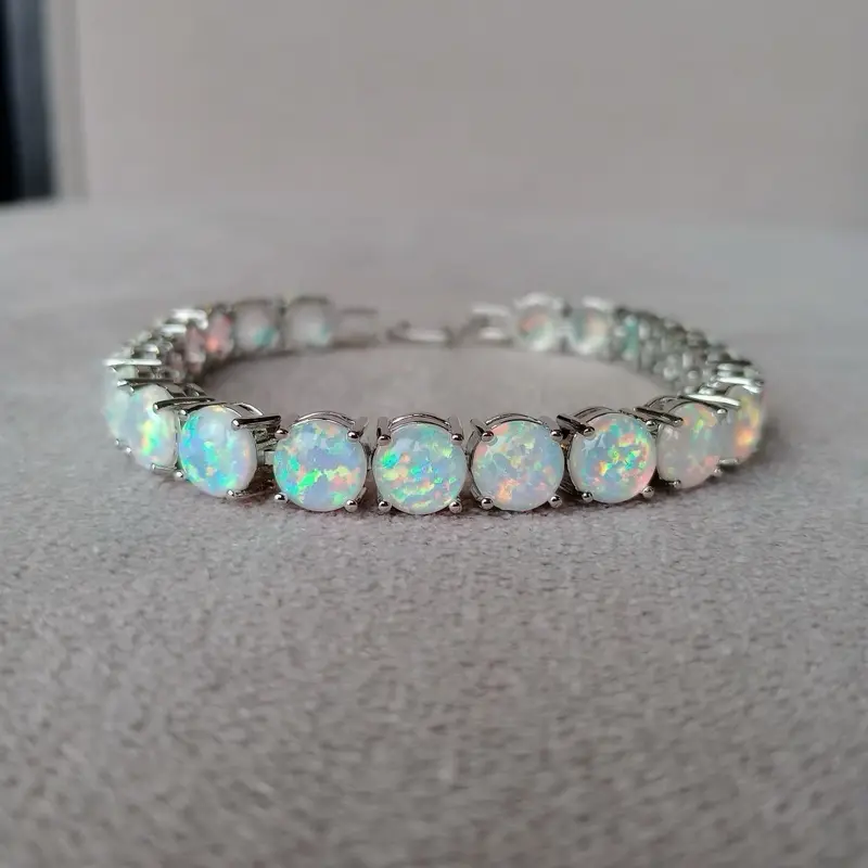 Natural White Opal Tennis Bracelet, October Birthstone, Opal Jewelry, Opal Bracelet- Perfect Birthday or Anniversary Gift - White October Birthstone - Opal Jewelry - Unisex Gift