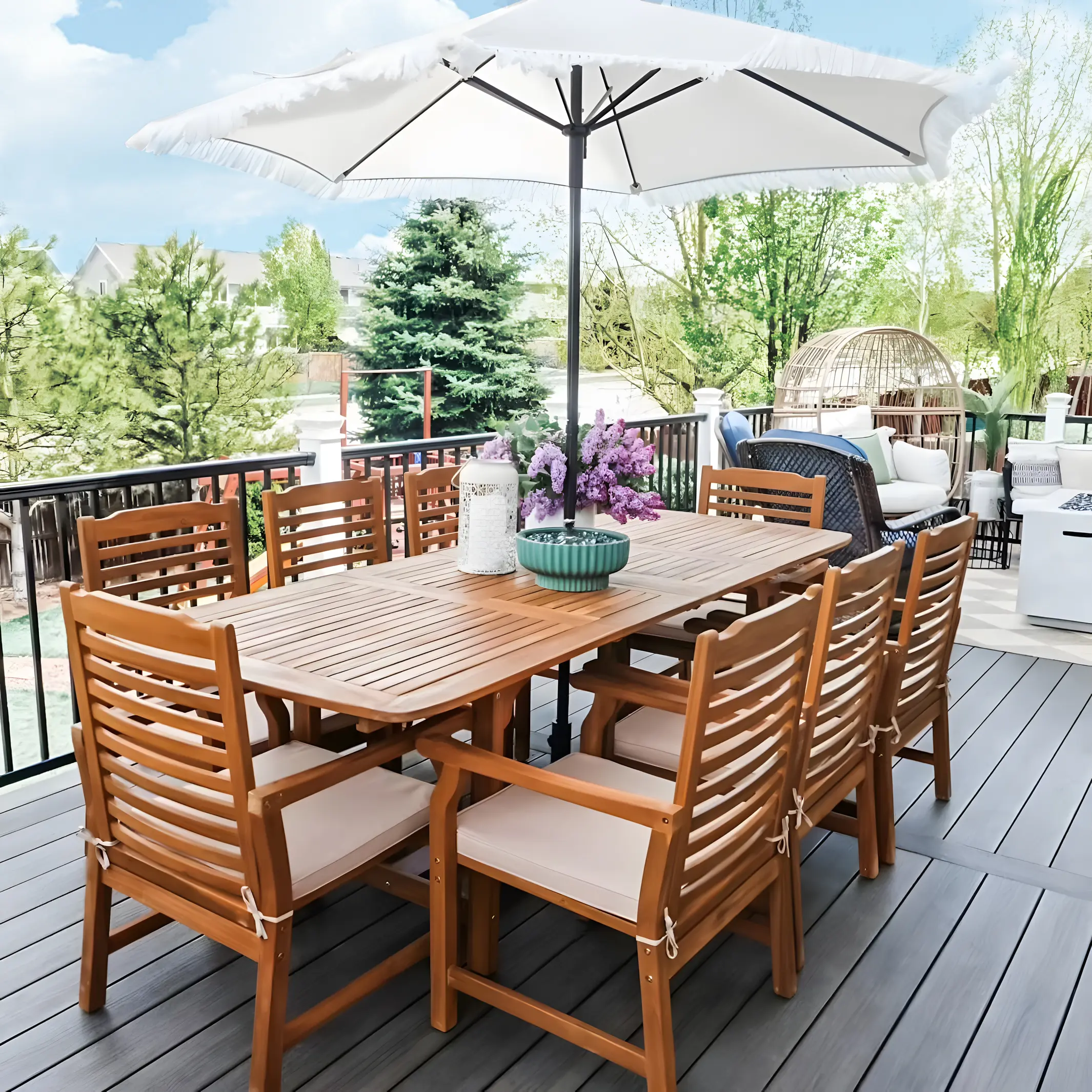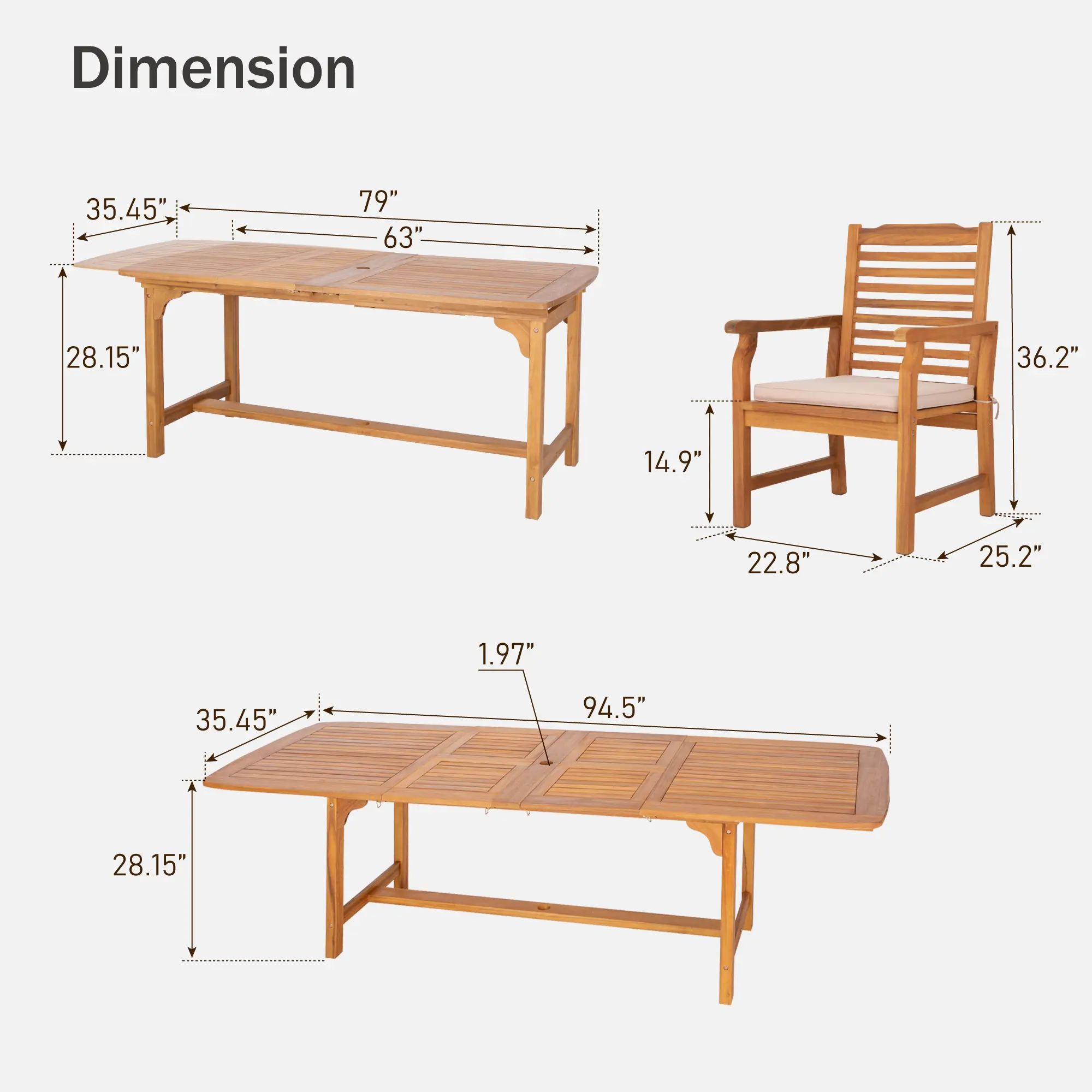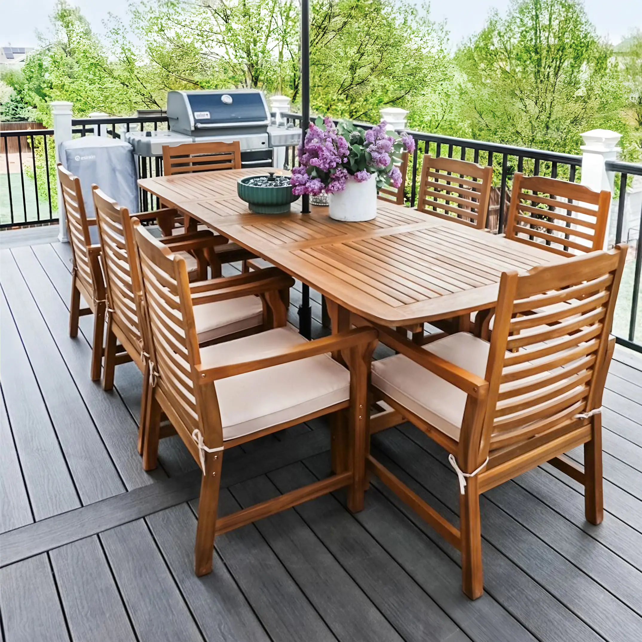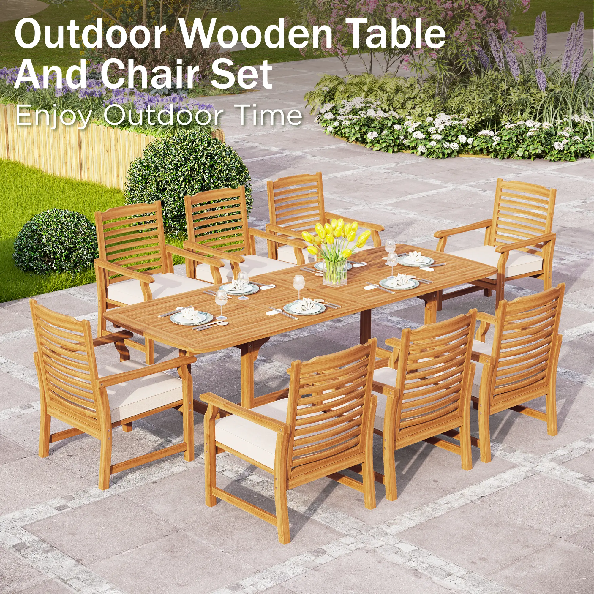 PHI VILLA Acacia Wood Patio Dining Set for 8, Expandable Teak Dining Table & Wooden Chairs with Cushions, Farmhouse Dining Furniture Set for Outdoor Deck, Yard, Porch Home Design Minimal