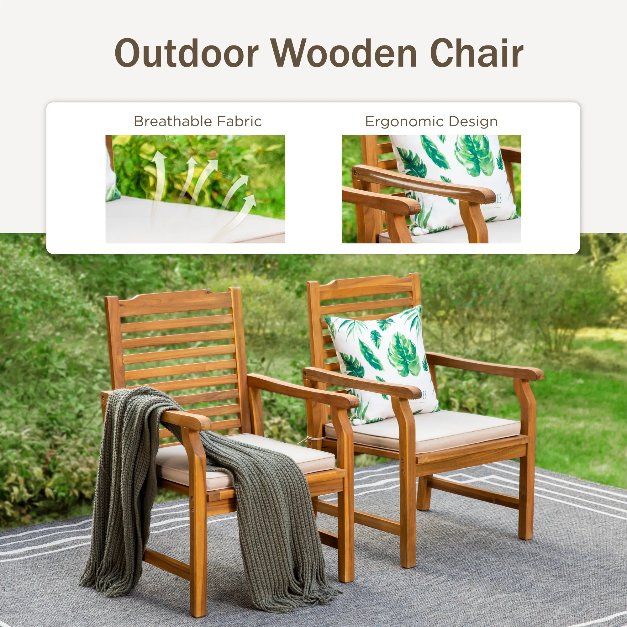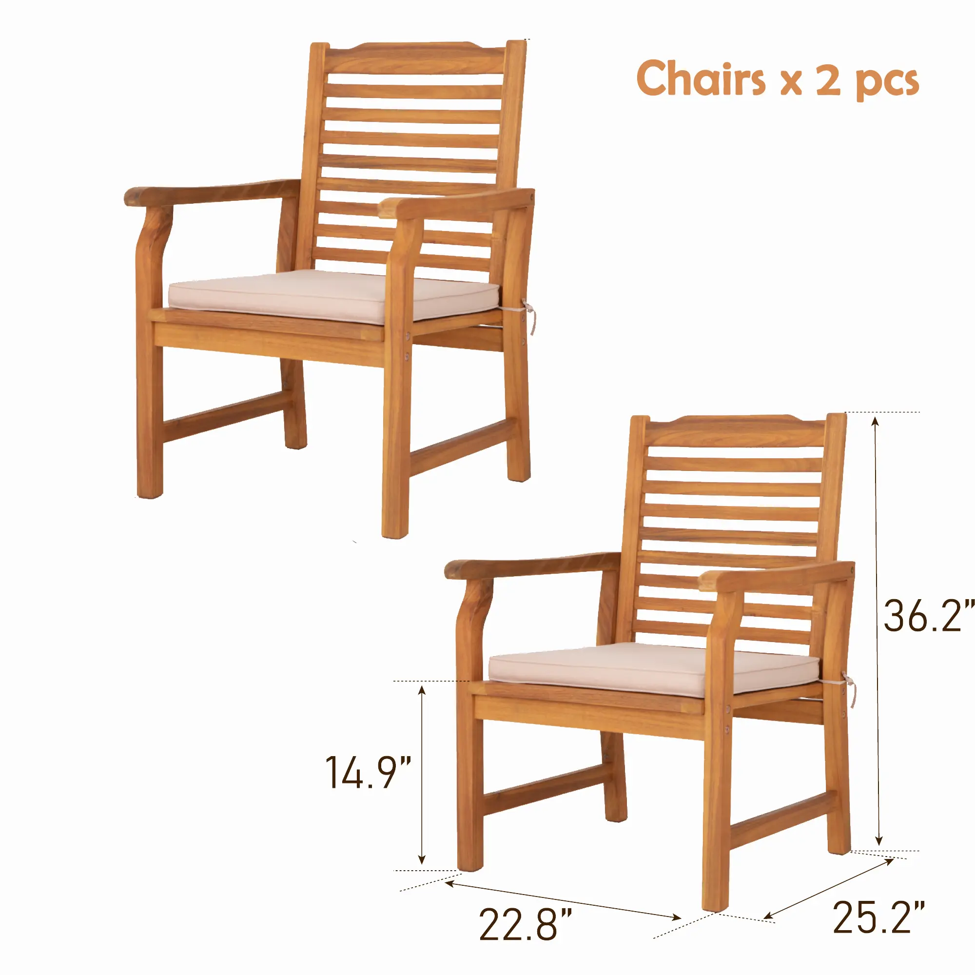 The chairs in the set are also made of acacia wood, ensuring the chair is stable and strong for any size person sitting, max capacity of 300 lbs.