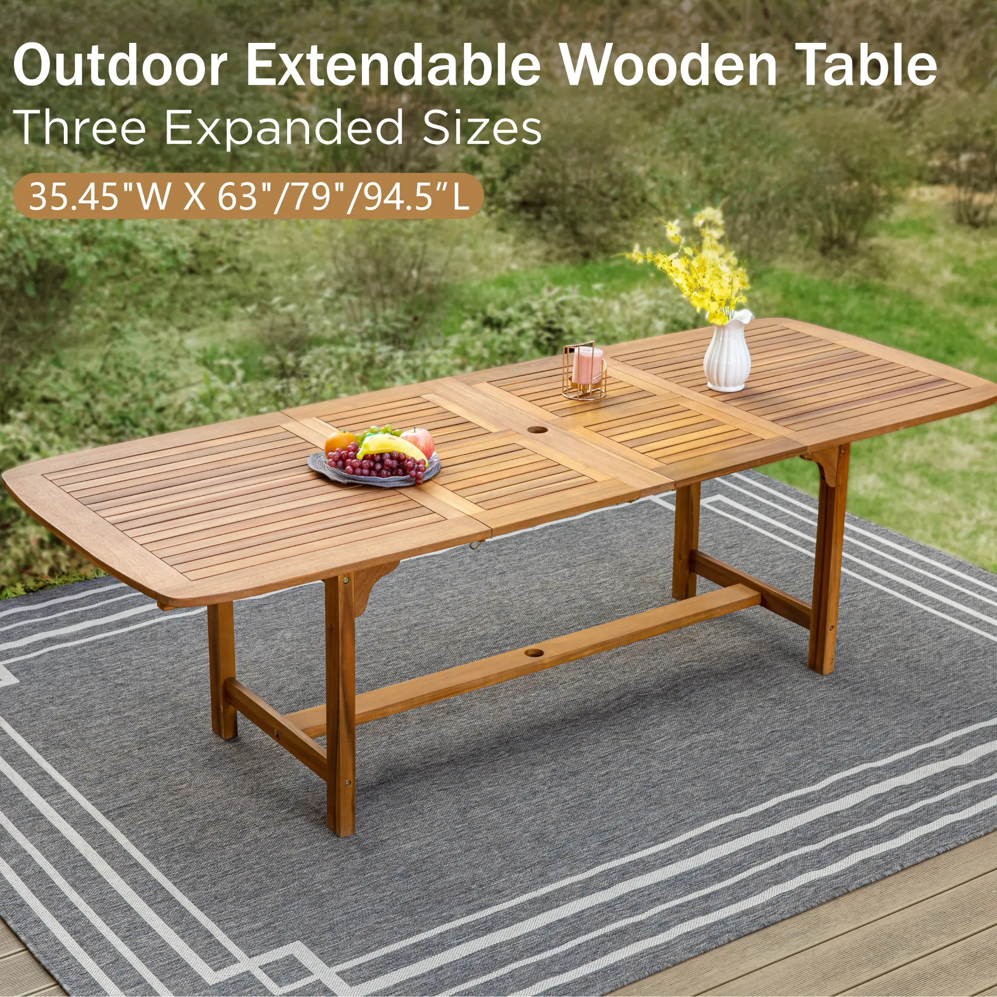 The wood table has a 1.96" umbrella hole at the center of the tabletop and a fixed hole at the bottom strengthened rod.