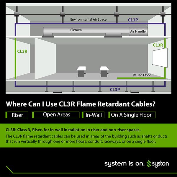 ·CL3R/CMR/FT4 riser-rated for flame resistance.